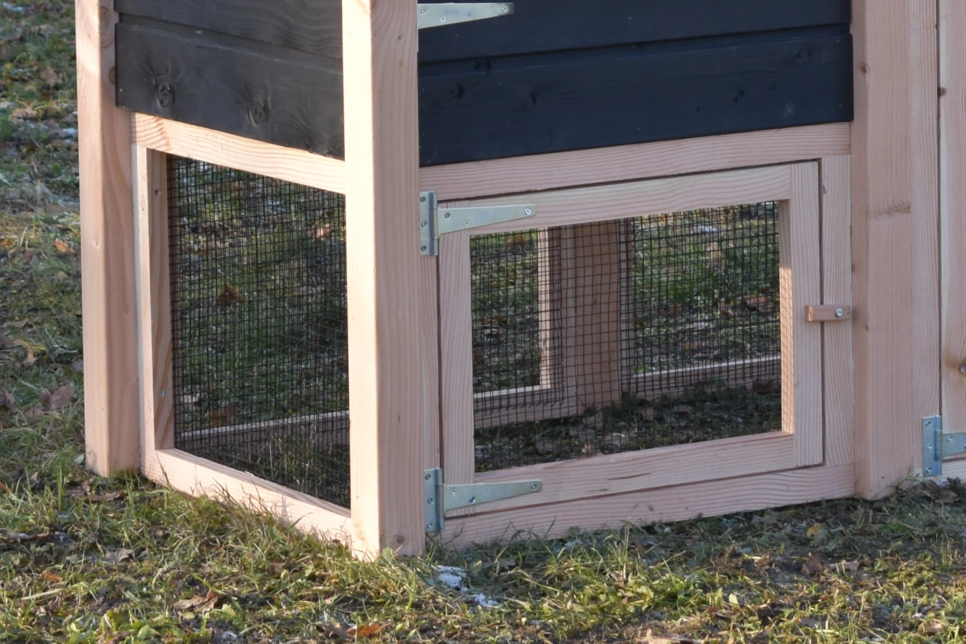 The mesh panels Rosa consists of 3 panels, 1 panel has a door. When you want to connect a run with the haystack Rosa, Rosy, Rosanne and Rosalynn, you could order this directly. You can order this later and mount it in the haystack.