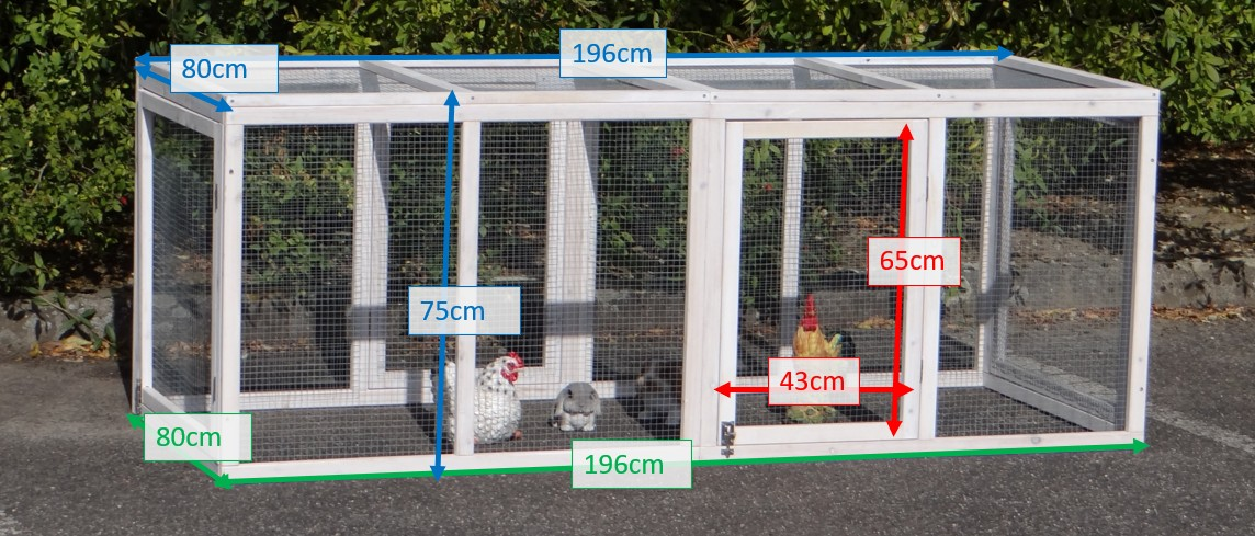 - The roof of the additional run is equipped with mesh (ca. 12x12mm)