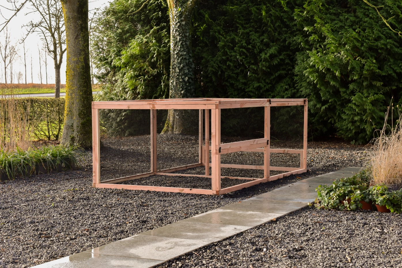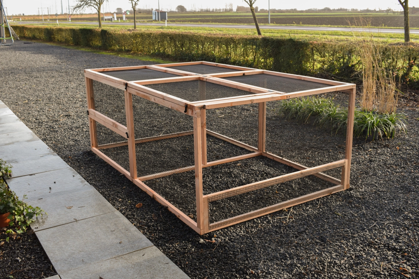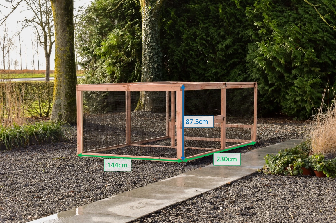 The Eggy extension run is the perfect addition to your Eggy chicken or rabbit hutch. Featuring a sturdy mesh roof, it offers extra space and safety for your pets. Easy to attach to your existing hutch. Choose the Eggy extension run and provide your animals with more freedom and comfort!