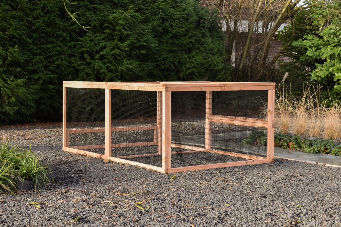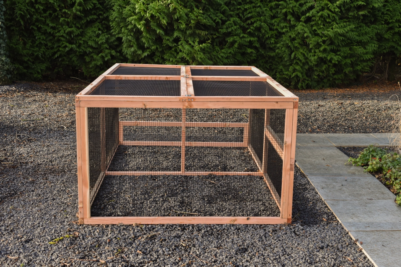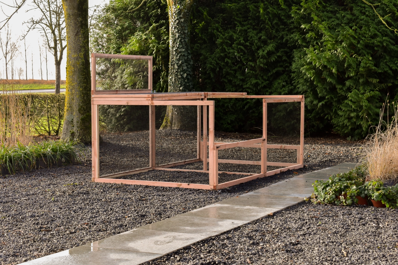 The Eggy extension run is the perfect addition to your Eggy chicken or rabbit hutch. Featuring a sturdy mesh roof, it offers extra space and safety for your pets. Easy to attach to your existing hutch. Choose the Eggy extension run and provide your animals with more freedom and comfort!