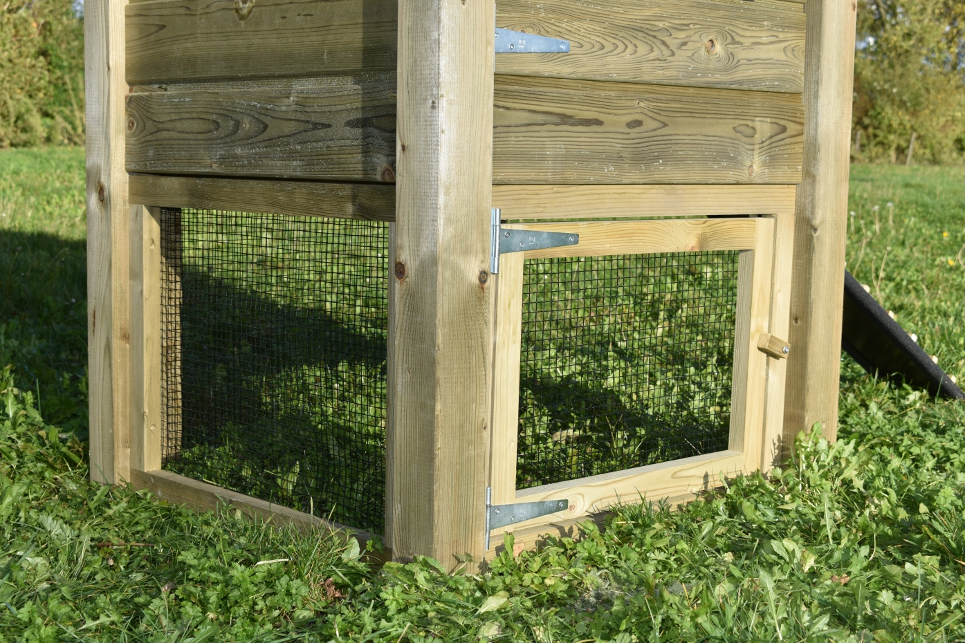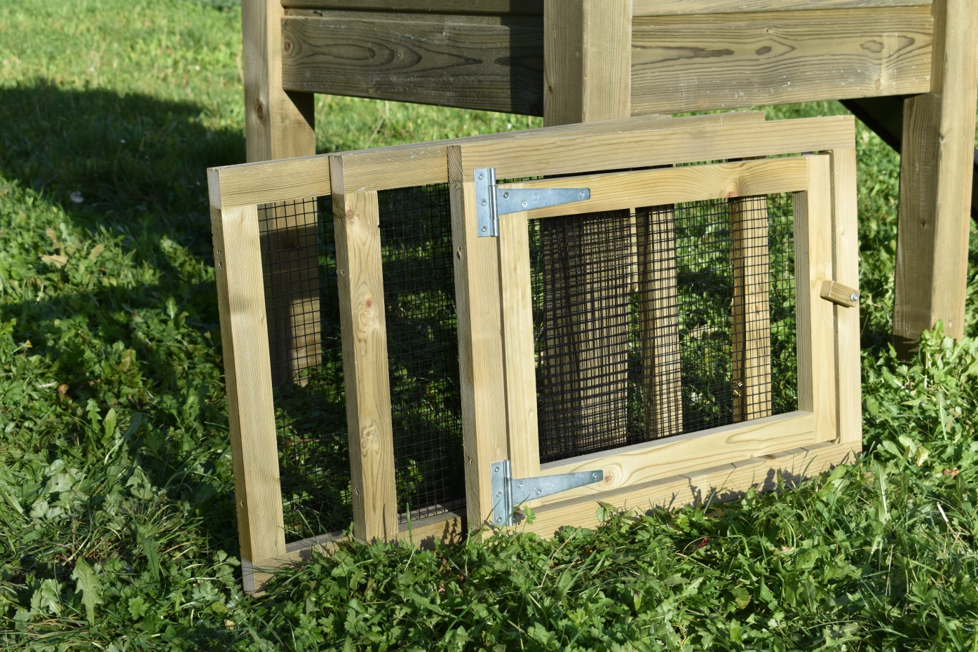 The mesh panels Rosa consists of 3 panels, 1 panel has a door. When you want to connect a run with the haystack Rosa, Rosy, Rosanne and Rosalynn, you could order this directly. You can order this later and mount it in the haystack.