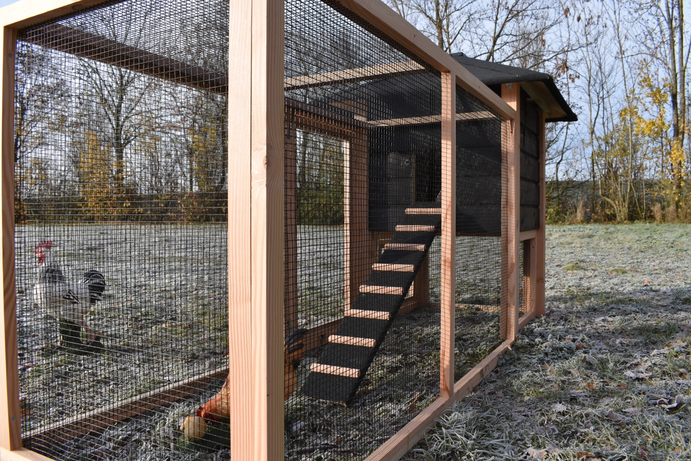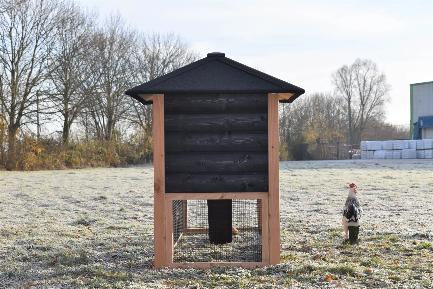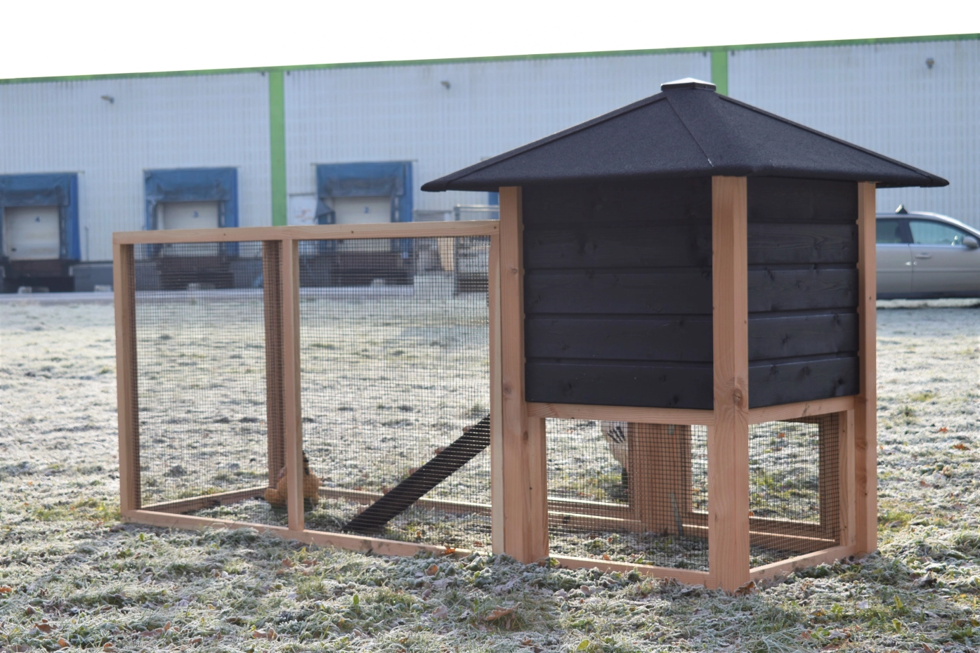 - This chicken coop is equipped with plastic feet