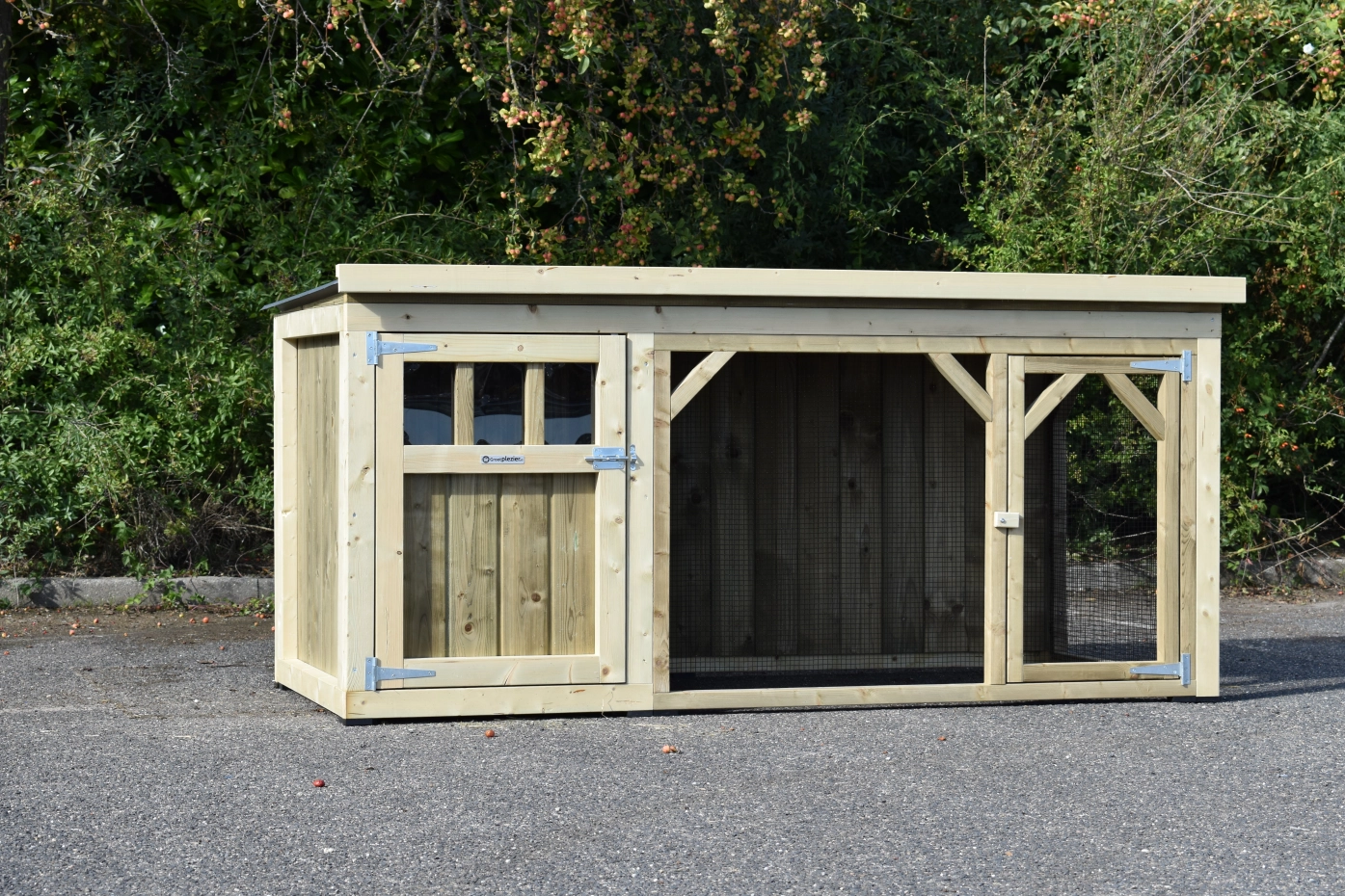 Chickencoop Belle 2 is a beautiful hutch with a covered run. The sleeping compartment is provided with a laying box, perches and a floor of pressure treated spruce wood. We make this chickencooop by ourselves in our shop. Because we use high-quality materials, this hutch is almost free from maintenance.