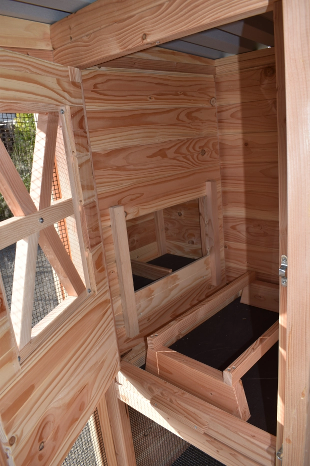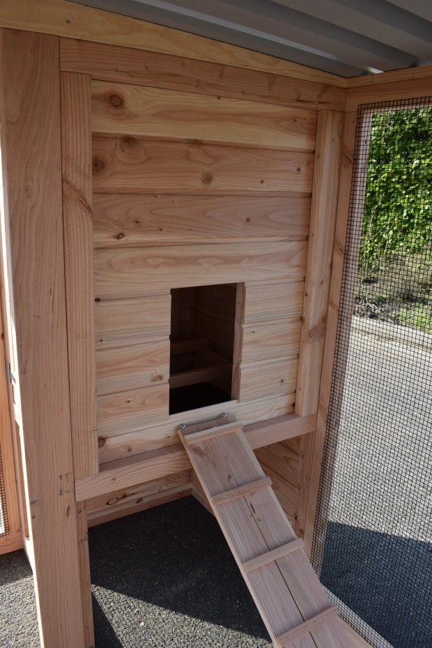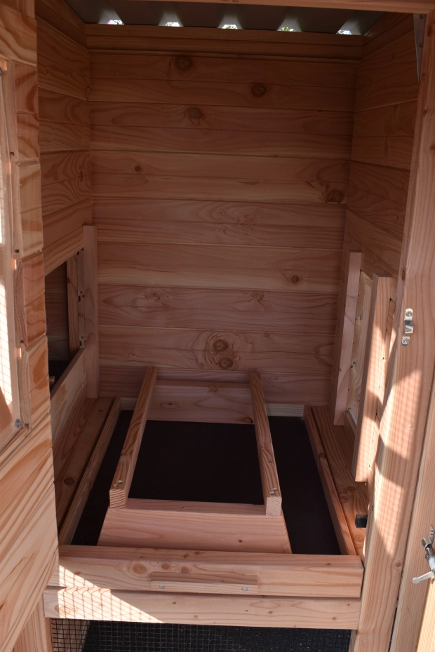 - This chicken coop is equipped with a nest box
