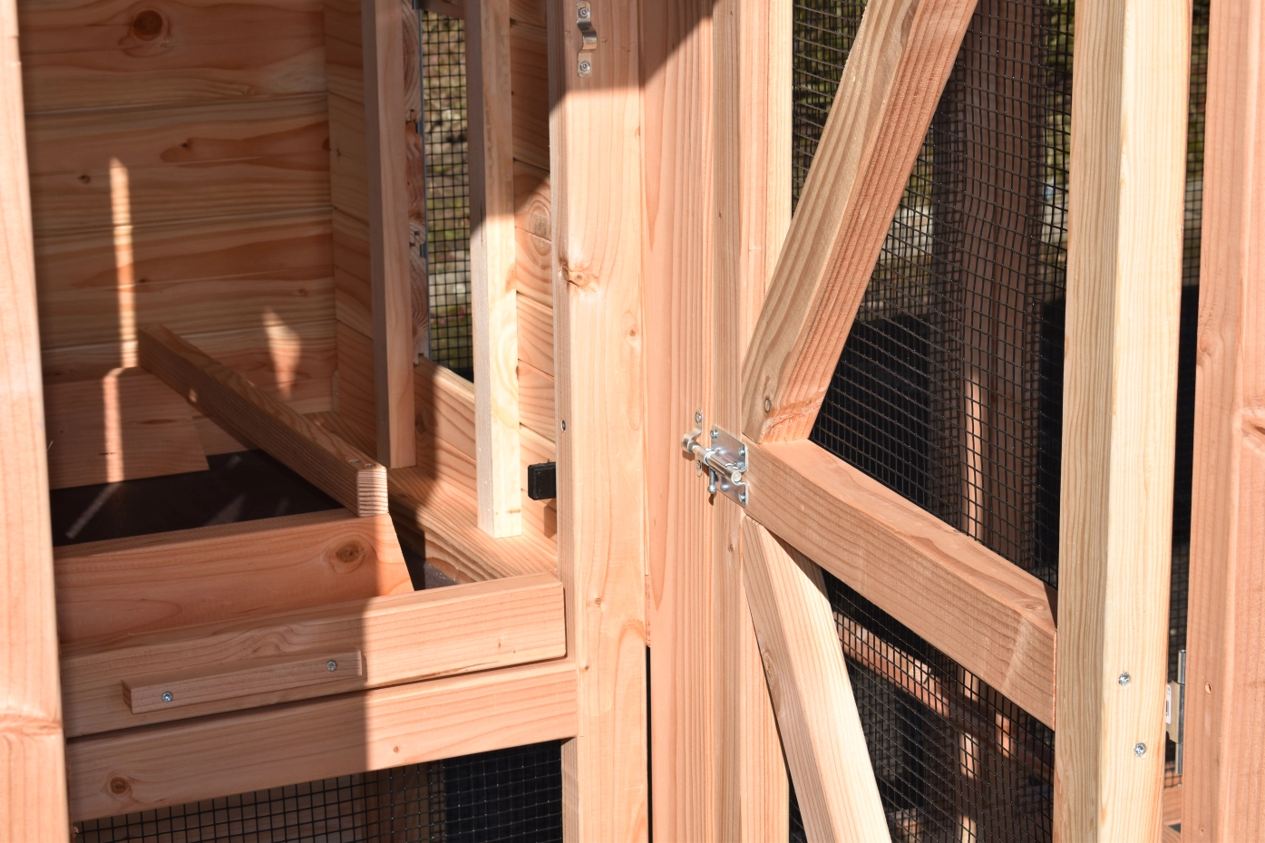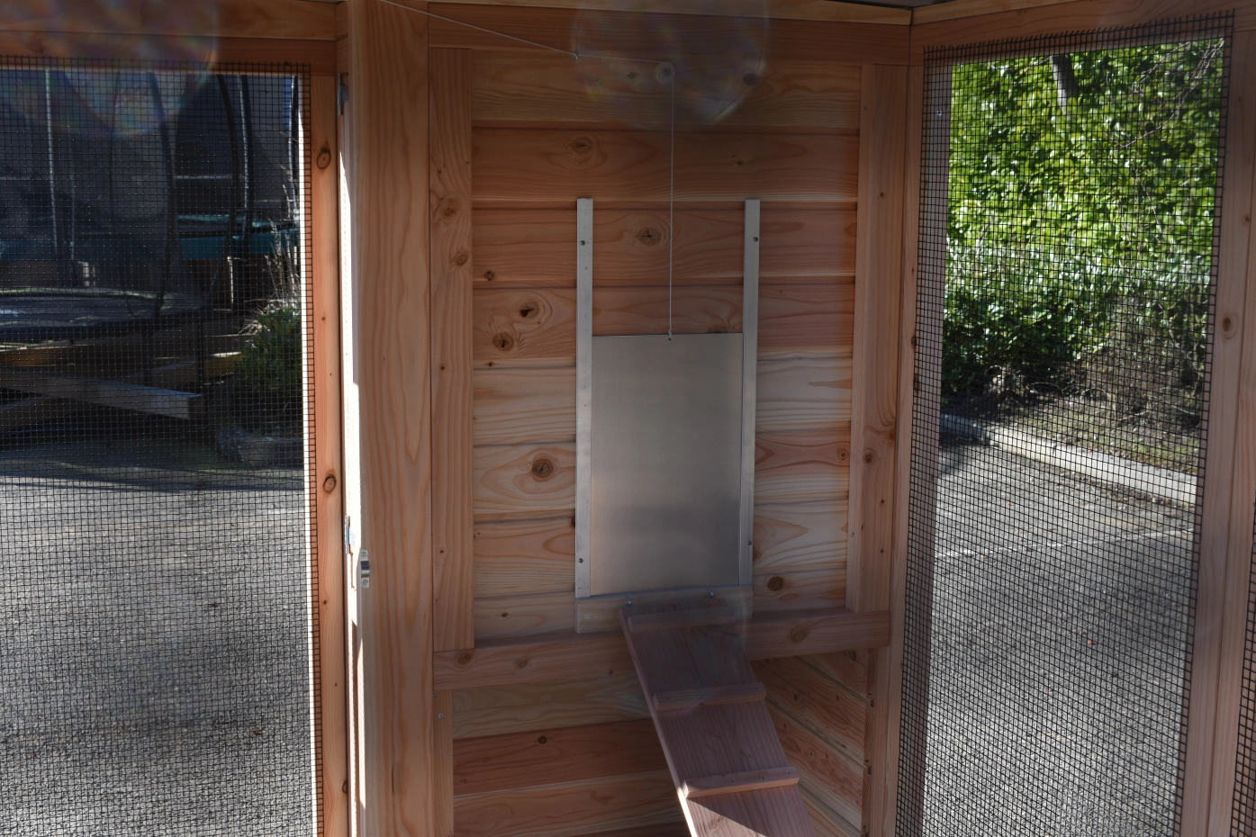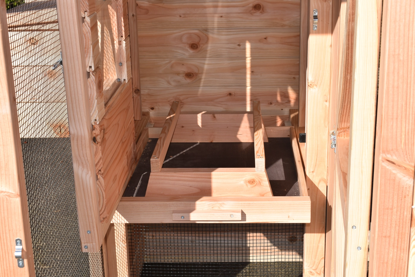 - This chicken coop is equipped with a nest box