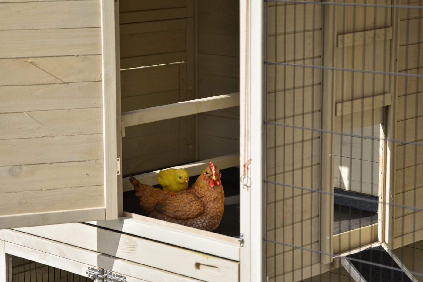 - The doors of this rabbit hutch are equiped with double locks