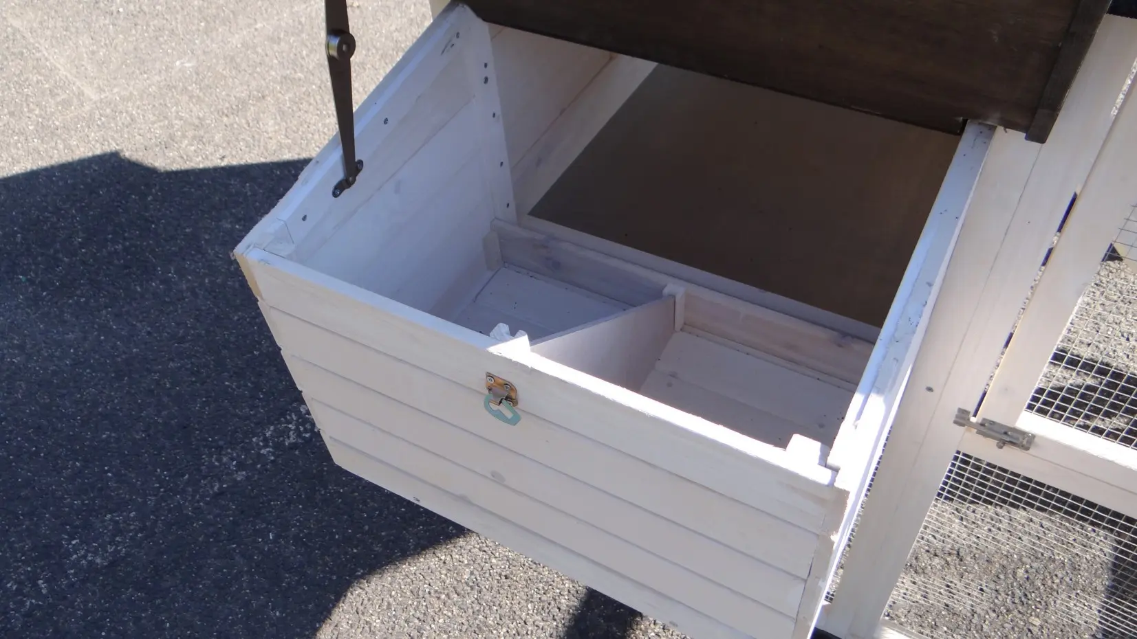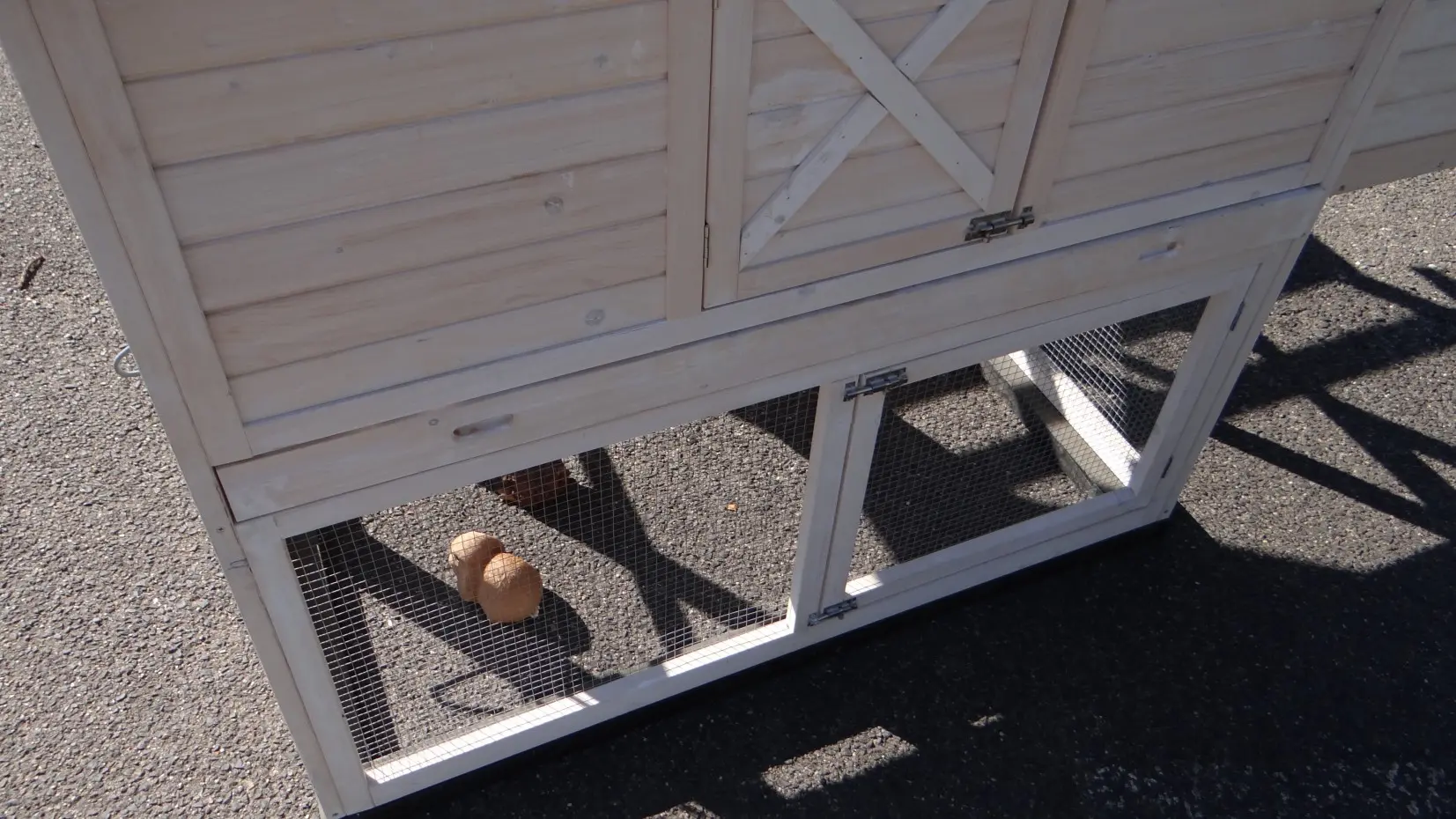 - The doors of this rabbit hutch are equiped with double locks