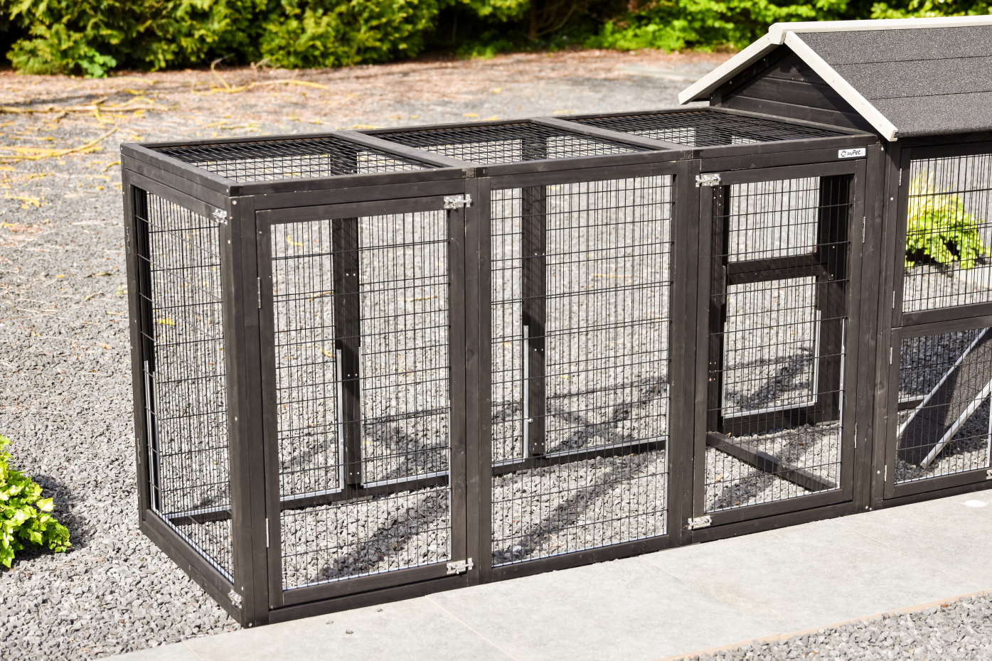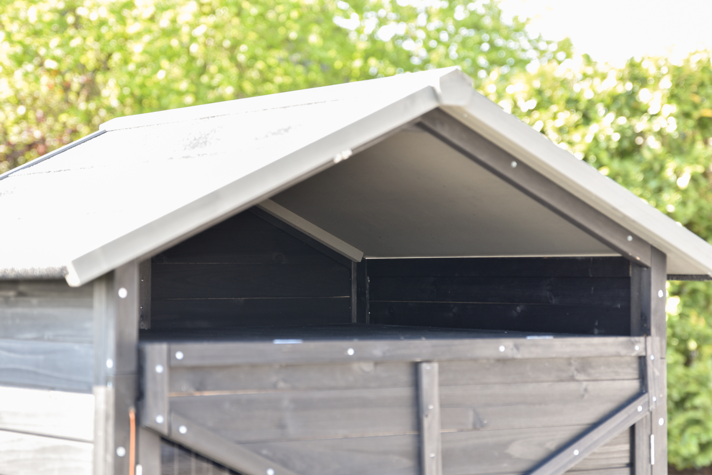 The coop comes with two attached runs: one with a felt roof and one with a wire roof, allowing your chickens to enjoy both shelter and fresh air