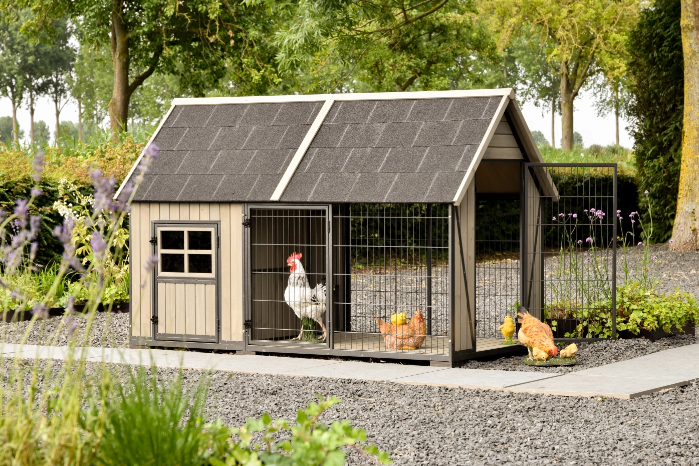 With its distinctive gabled roof, three access doors and wooden floor, this chicken coop is not only practical but also user-friendly. The spacious roosting area offers shelter and comfort, while the large run provides plenty of space for scratching and roaming. Suitable for 9 small, 6 medium or 4 large chickens – a cosy home for any hen!