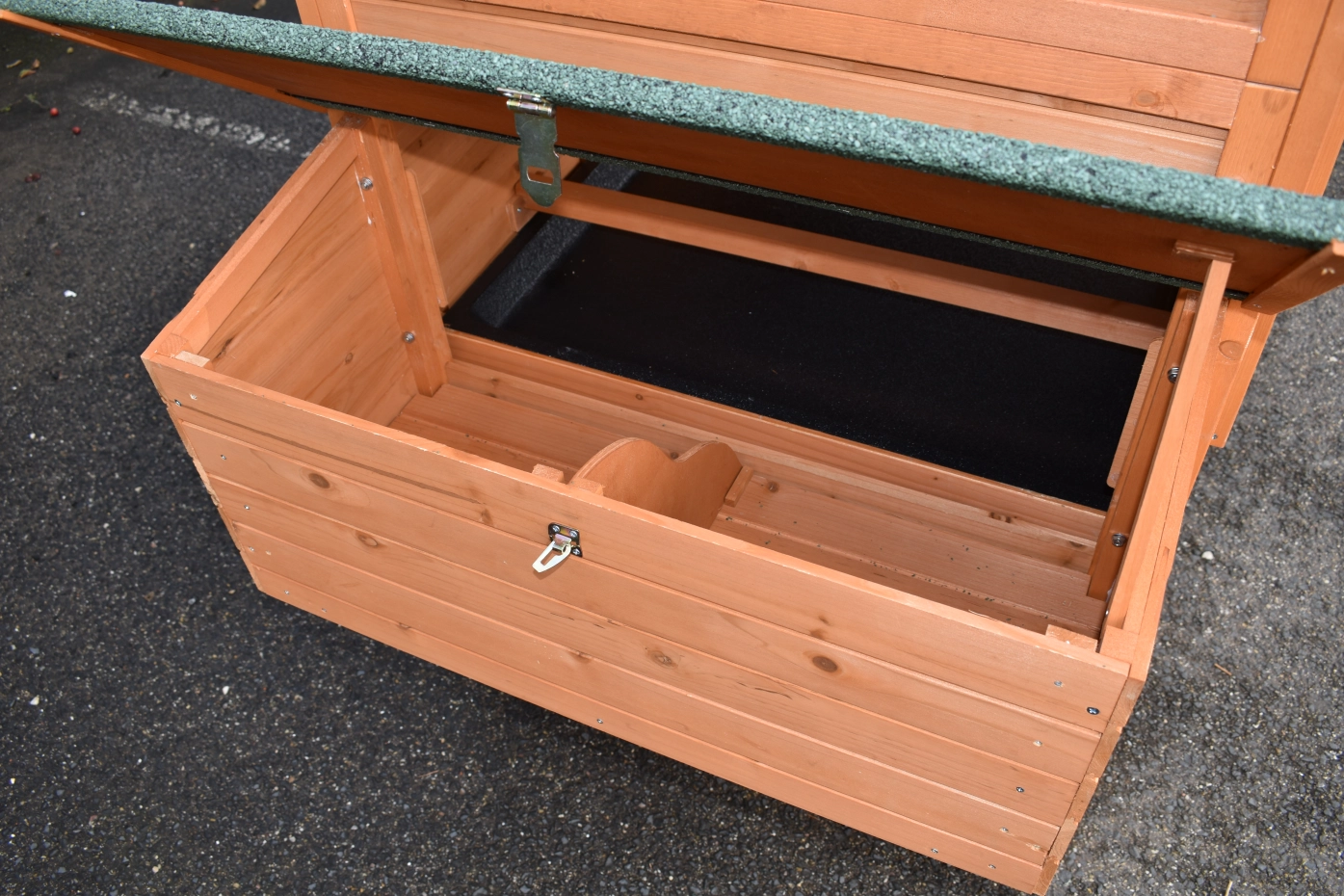 - The roof of this rabbit hutch is equipped with roofing felt