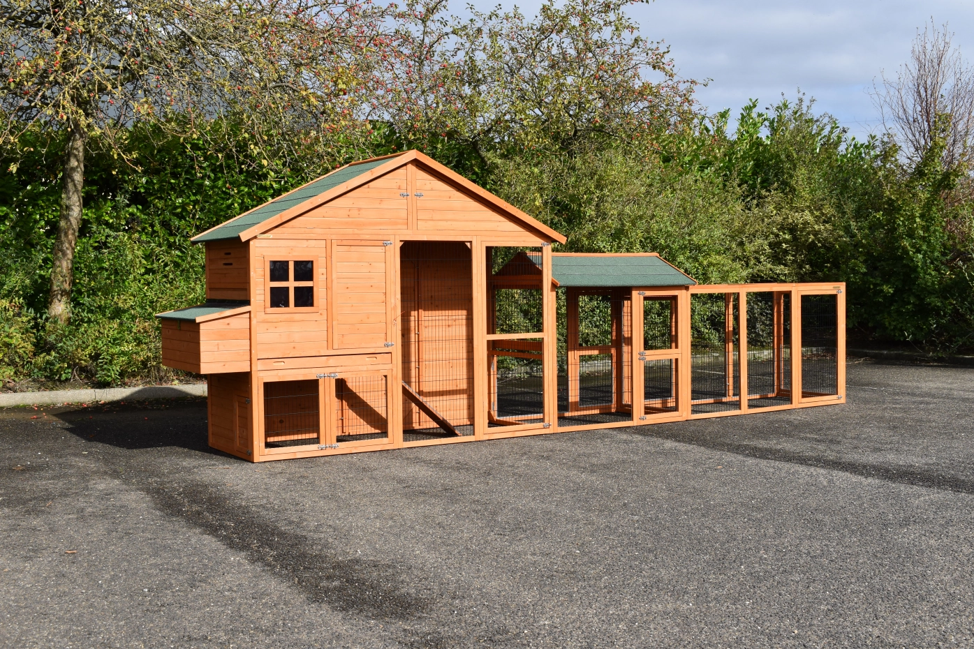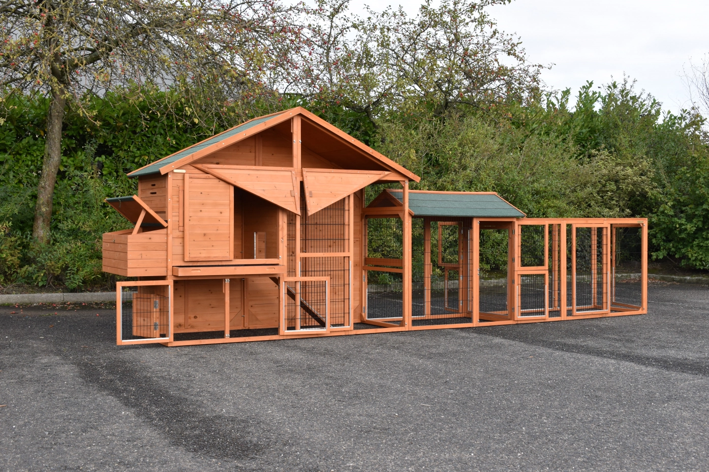 Chickencoop Holiday Large with laying nest and the runs Space Large and Functional is a practical, large and beautiful chickencoop of top quality. Chickencoop Holiday Large is suitable for 6-10 chickens. cm.