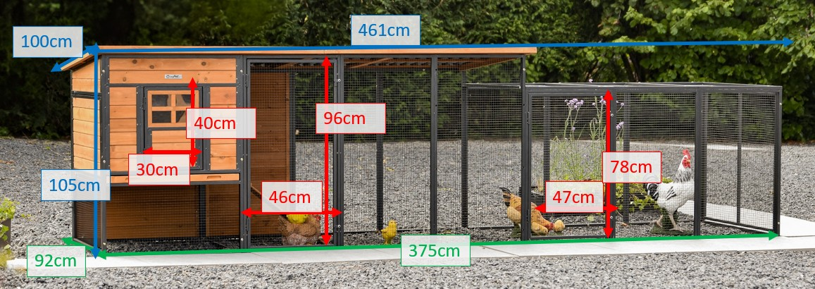 - The roof of the additional run is equipped with mesh (ca. 12x12mm)