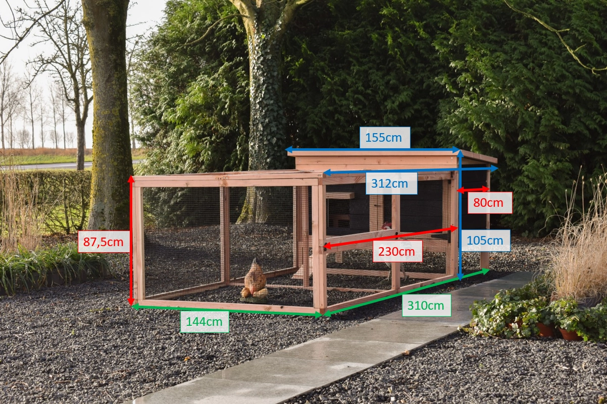 | Outer dimensions including roof (WxDxH) | 155x312x105cm |