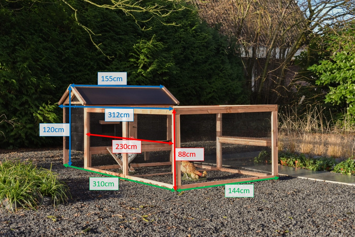 We indicate how many chickens the sleeping area is suitable for. The stated number applies per chicken size and is divided as follows: