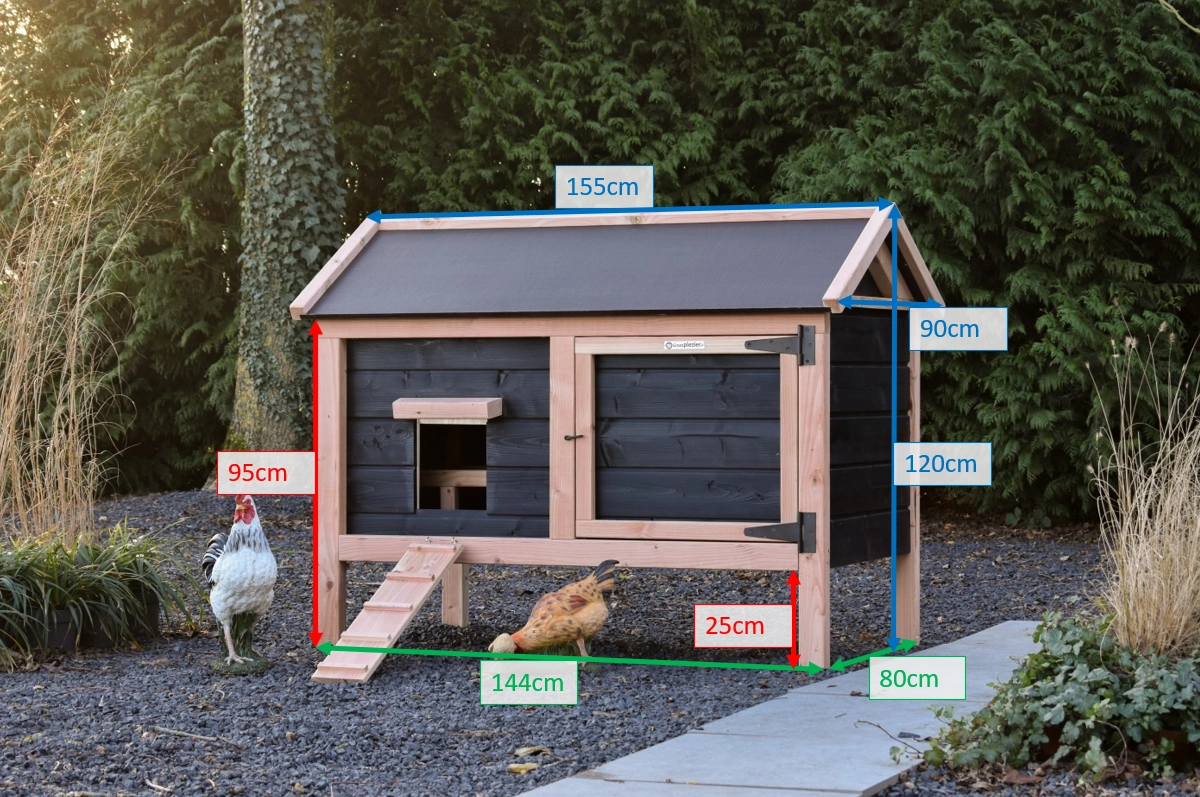 We indicate how many chickens the sleeping area is suitable for. The stated number applies per chicken size and is divided as follows: