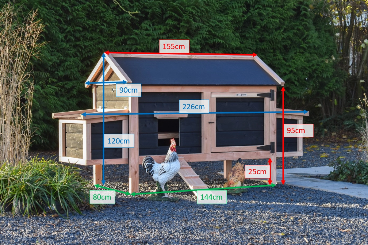 We indicate how many chickens the sleeping area is suitable for. The stated number applies per chicken size and is divided as follows:
