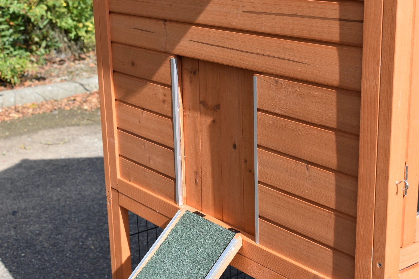 • The doors of this rabbit hutch are equiped with double locks
