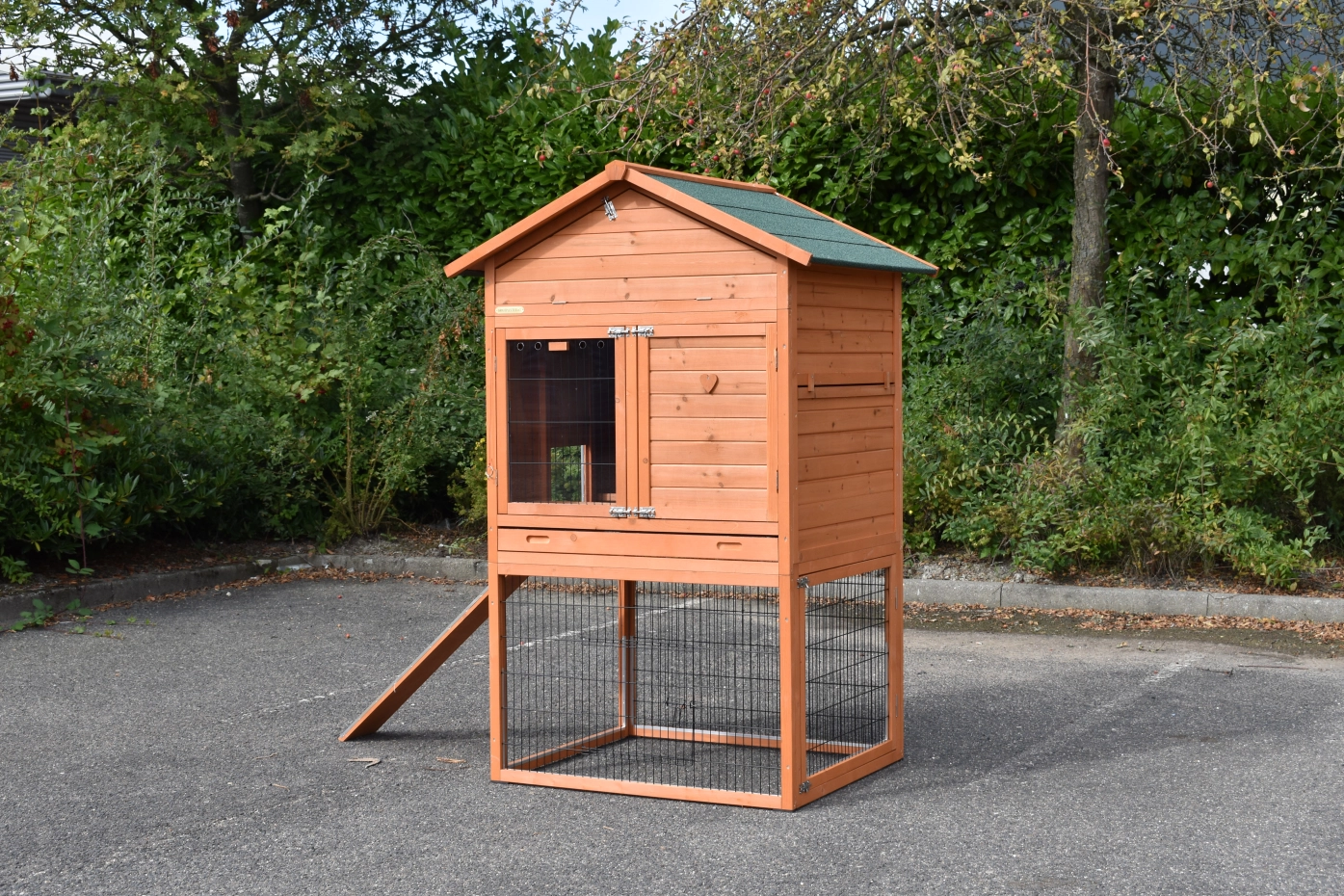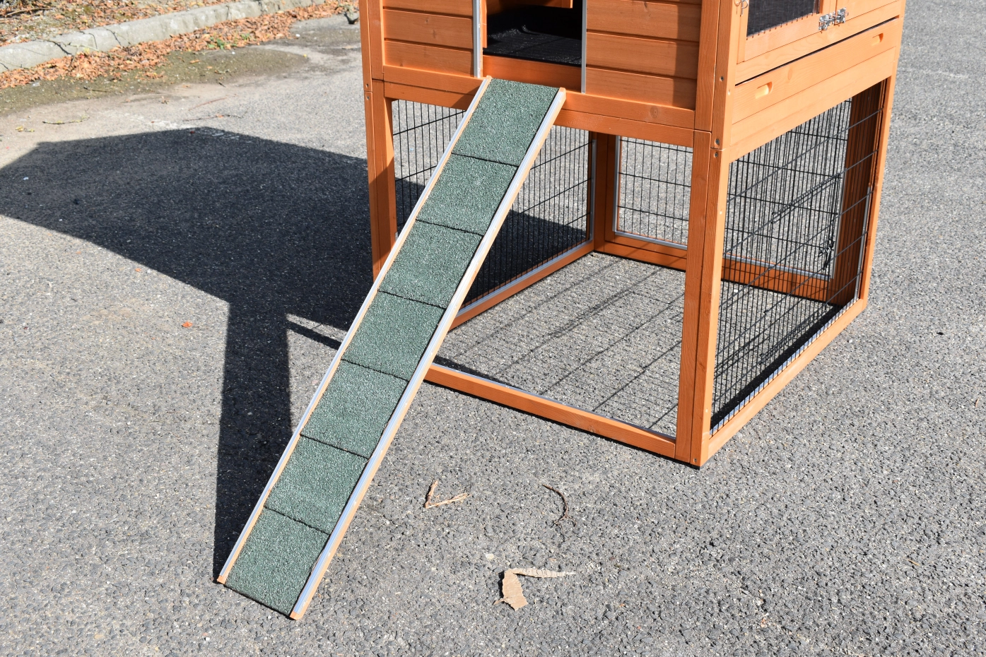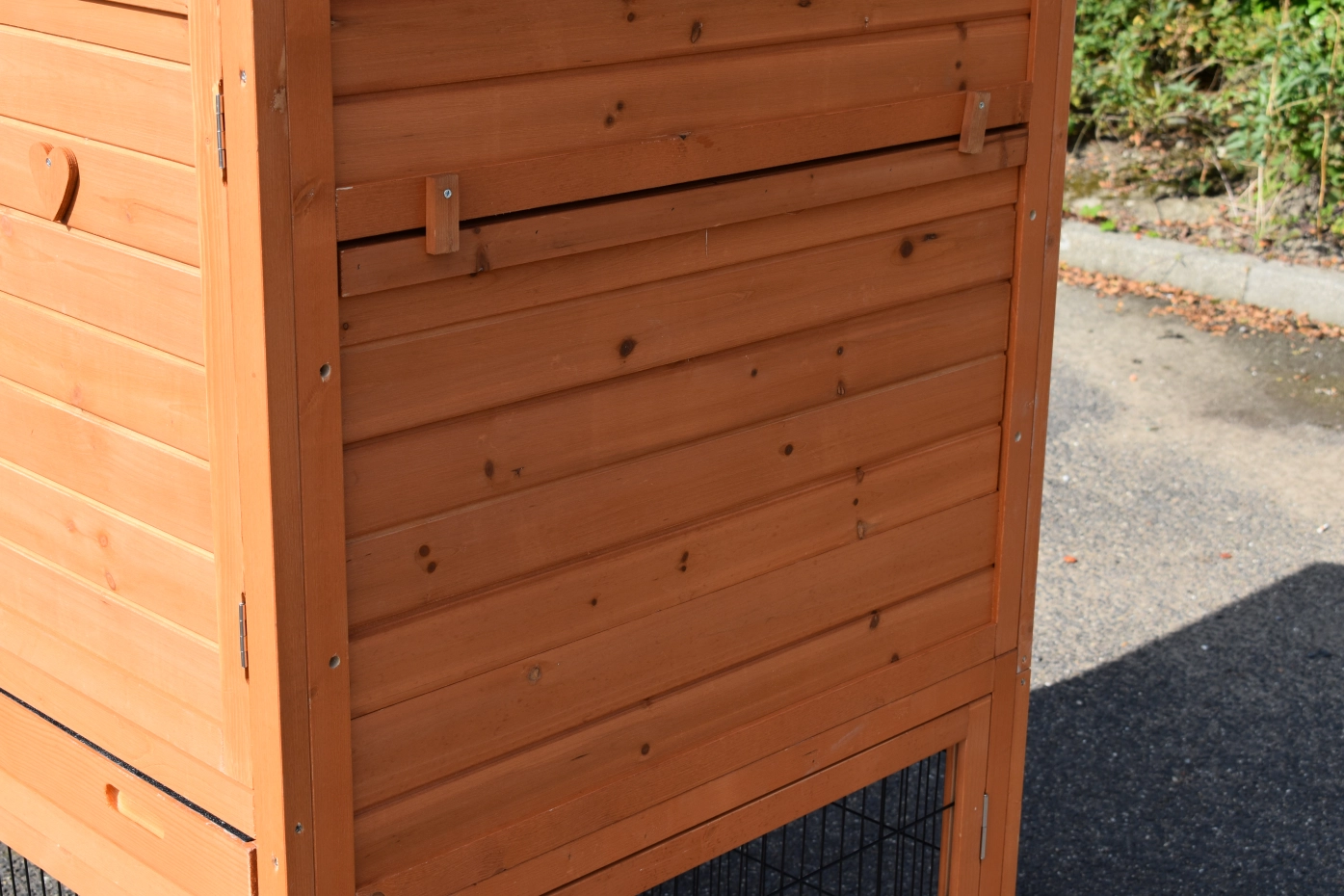 • The roof of this rabbit hutch is equipped with roofing felt
