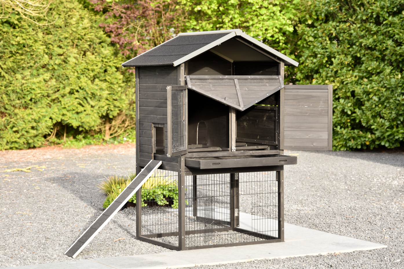- The roof of this rabbit hutch is equipped with roofing felt