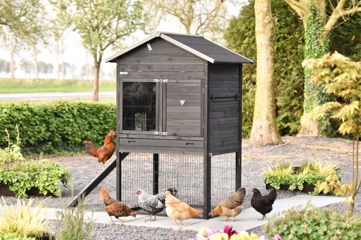 For optimal protection, the coop stands on rubber feet.