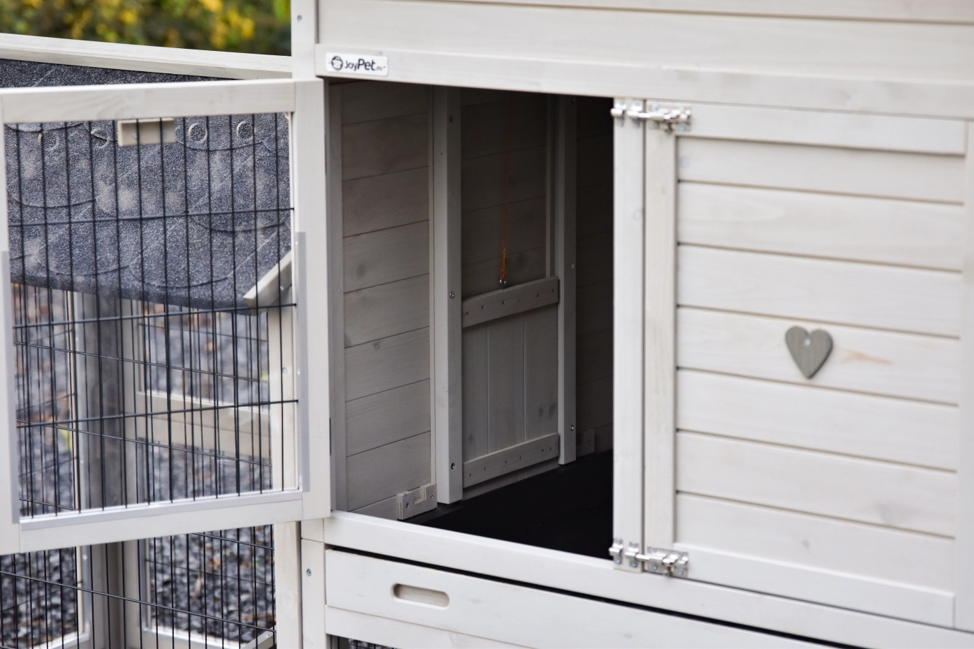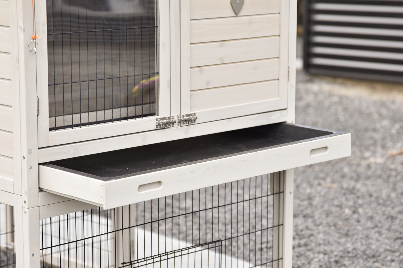 - The doors of this rabbit hutch are equiped with double locks