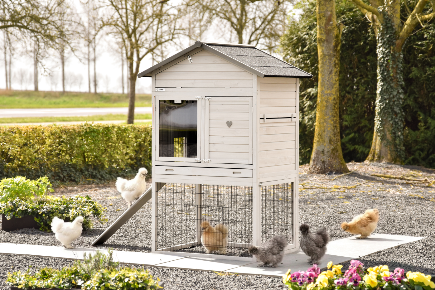 For optimal protection, the coop stands on rubber feet.