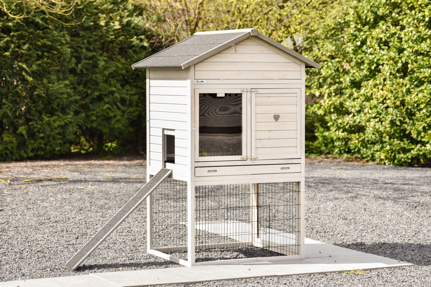 - The roof of this rabbit hutch is equipped with roofing felt