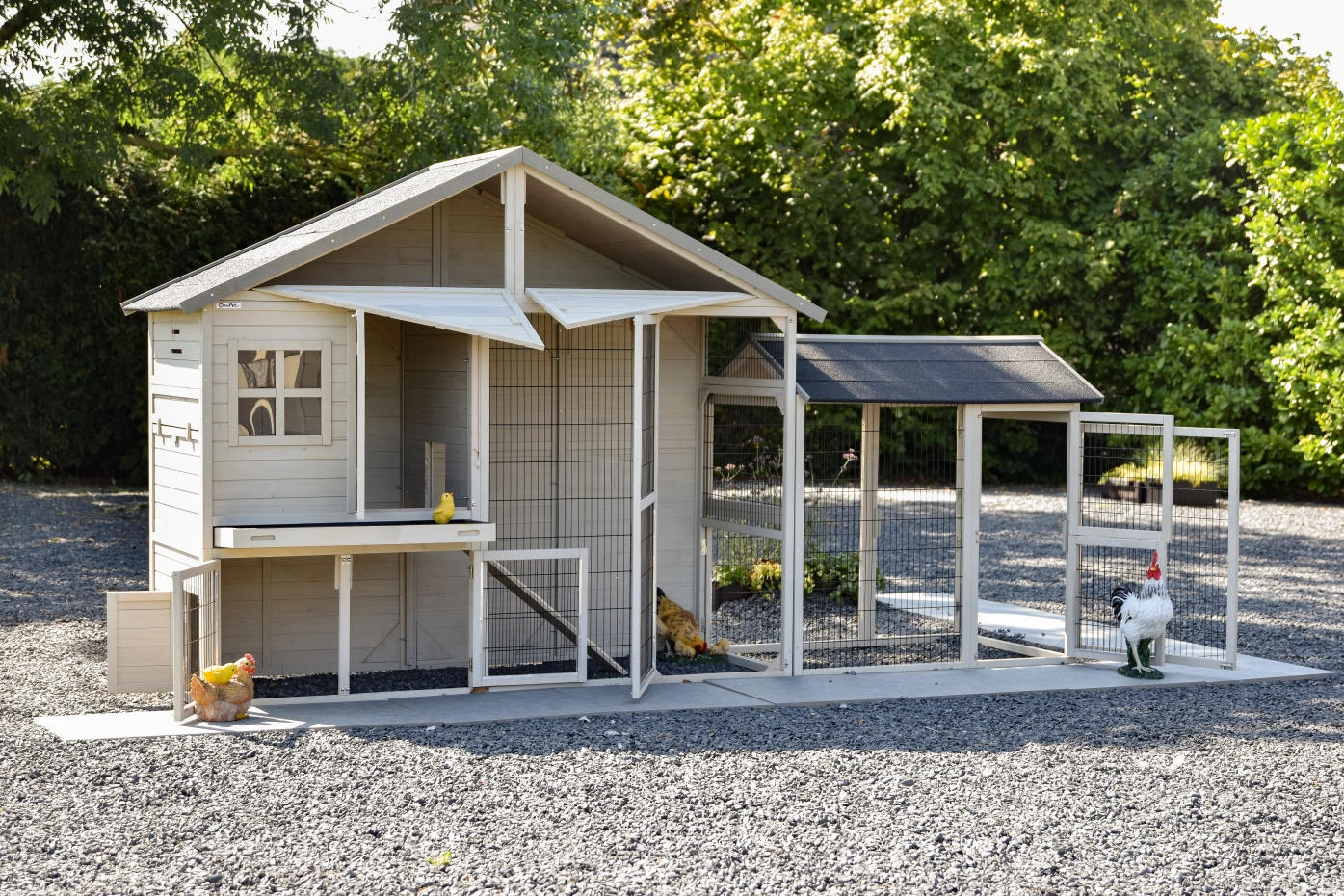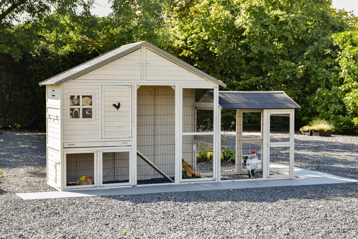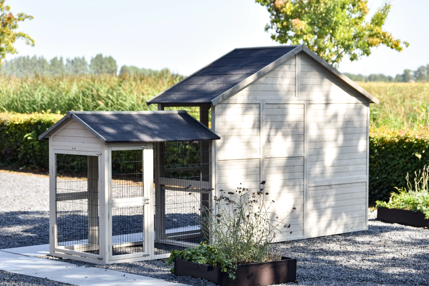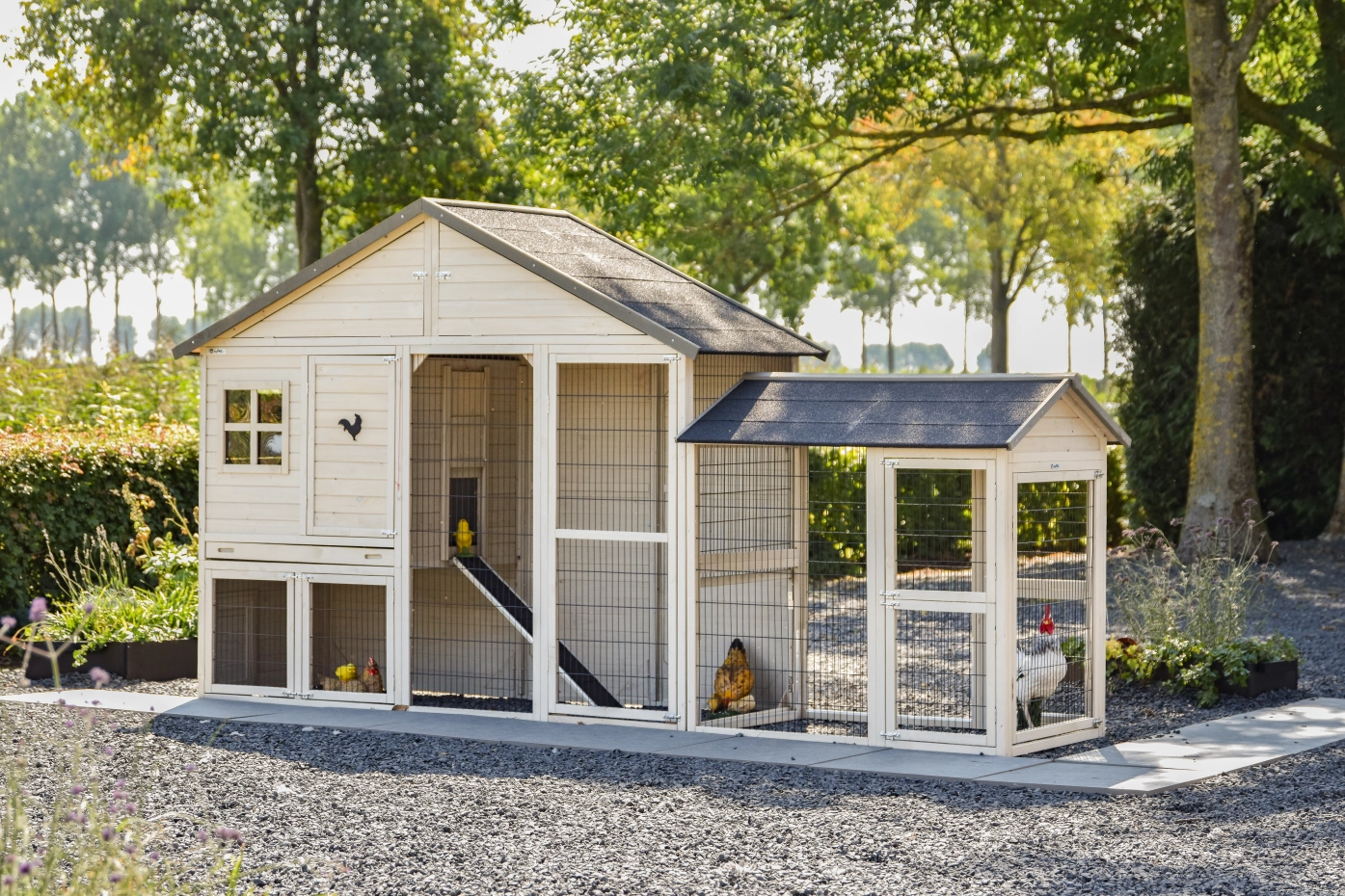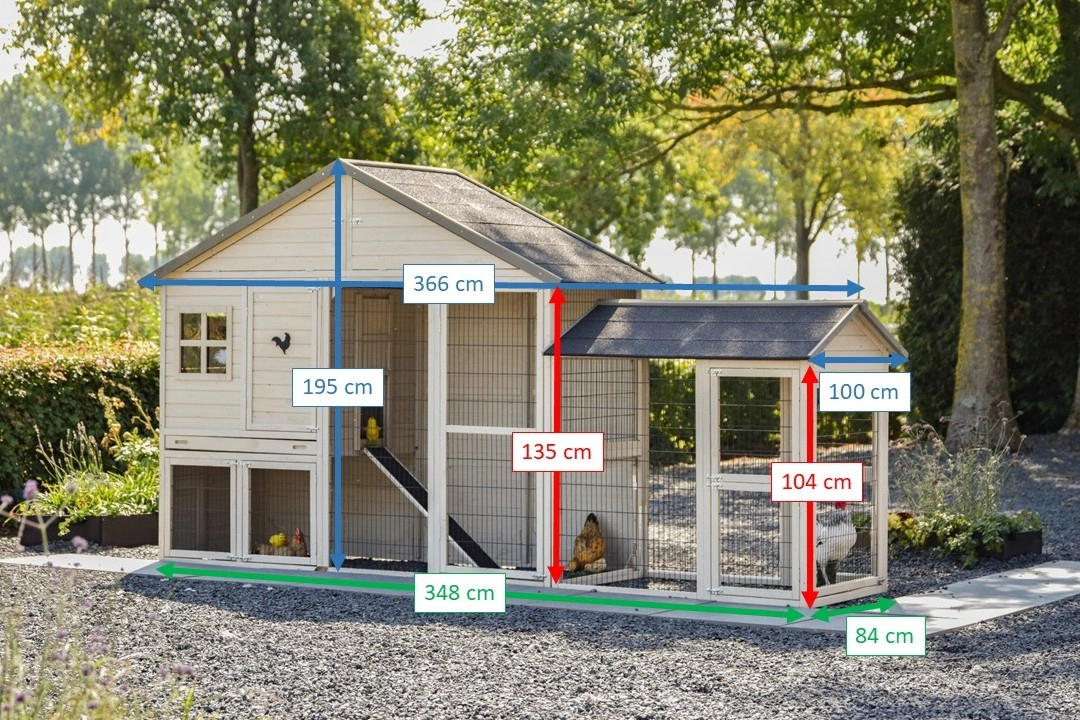 Large chicken coop Holiday Large is an exceptionally beautiful, practical, and spacious coop with a sleeping area and an additional run Space Large. This stunning coop is equipped with large doors throughout, and the sleeping area has two perches. Above the sleeping area is a spacious storage loft. The sleeping area of the Holiday Large chicken coop is suitable for housing around 4–10 chickens. Holiday Large is truly a fantastic chicken coop.