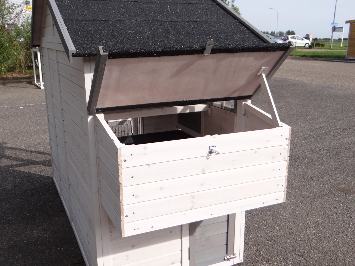 - The roof of this rabbit hutch is equipped with roofing felt