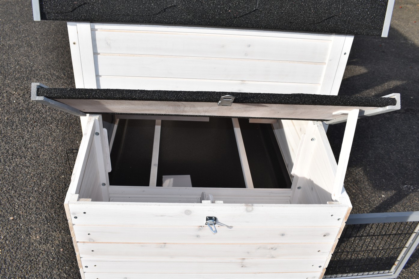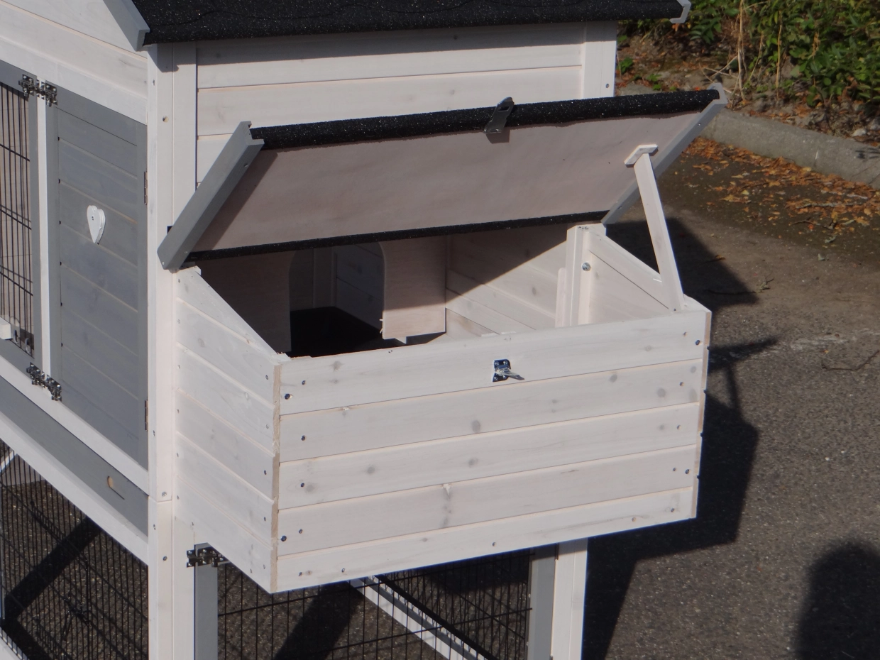 - The roof of this rabbit hutch is equipped with roofing felt