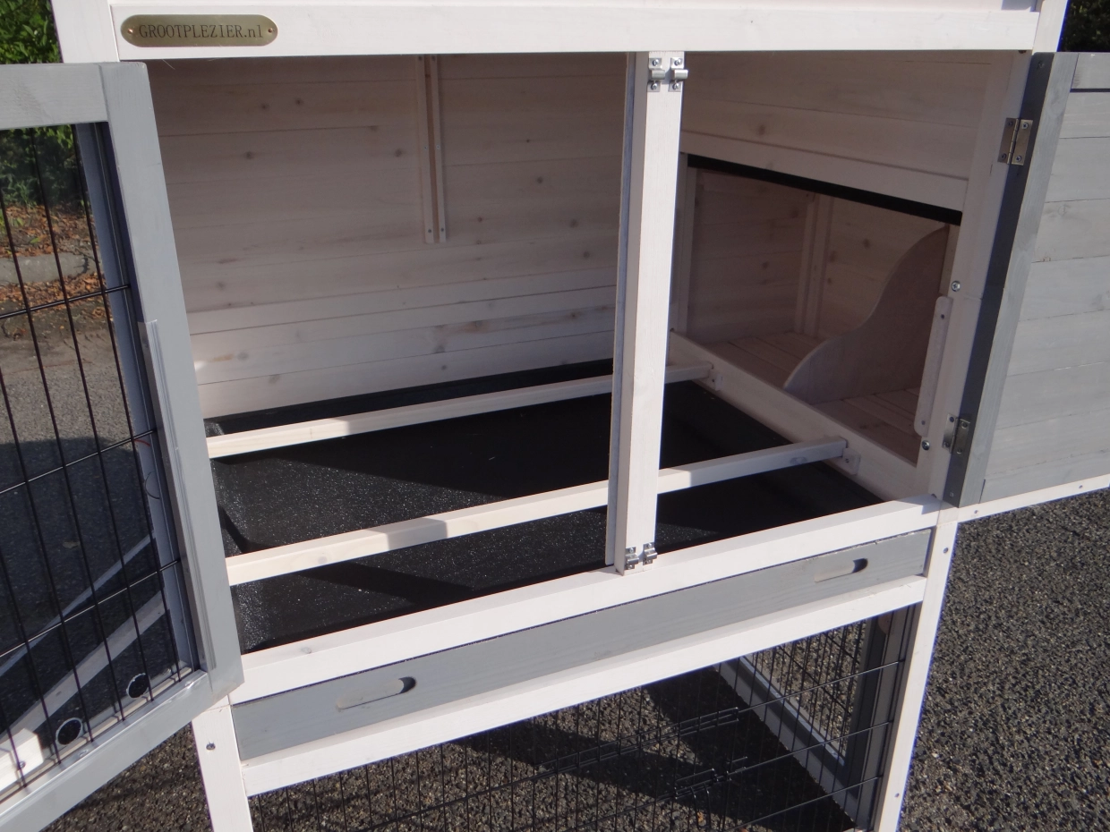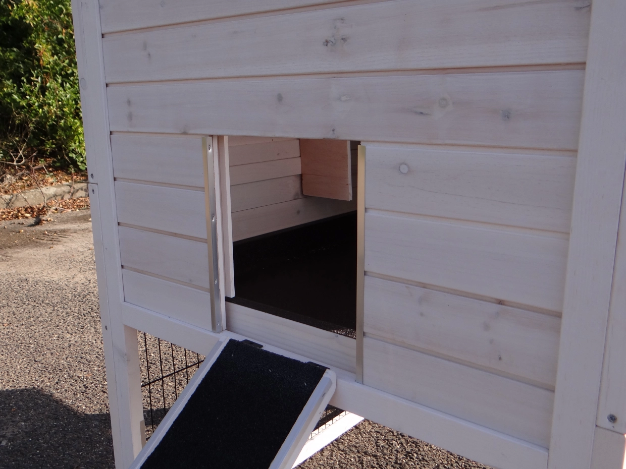 - The doors of this rabbit hutch are equiped with double locks