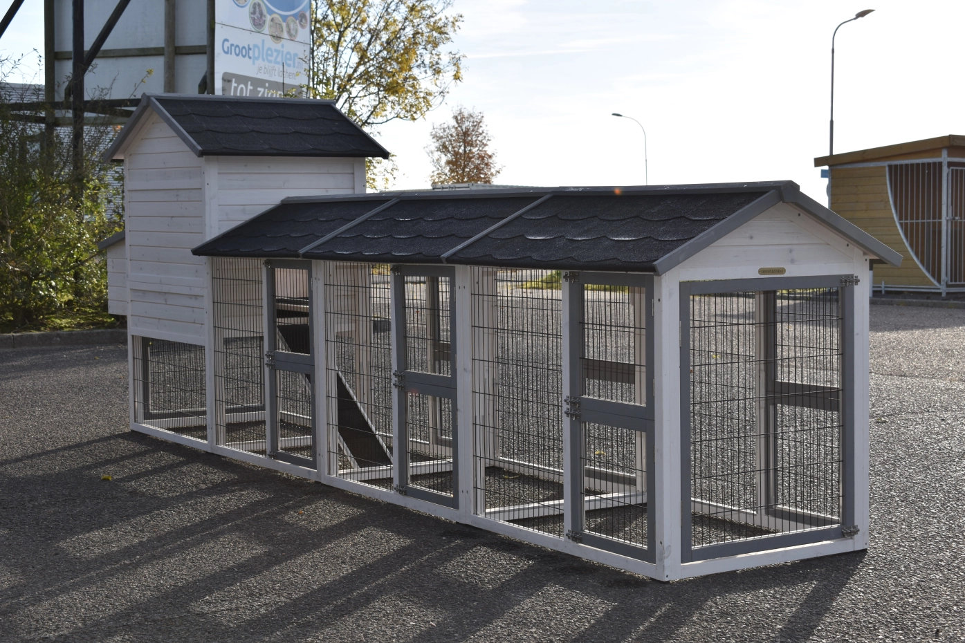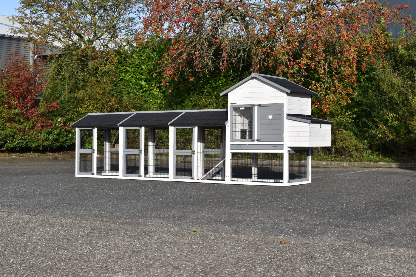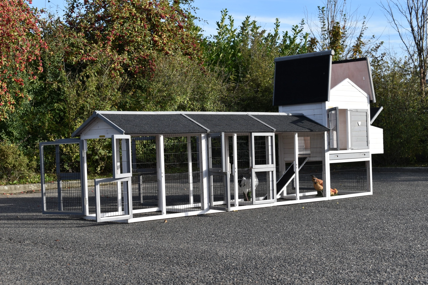 Chicken Coop Prestige Medium has been extended with three runs and a nesting box – a beautiful coop for your chickens.
