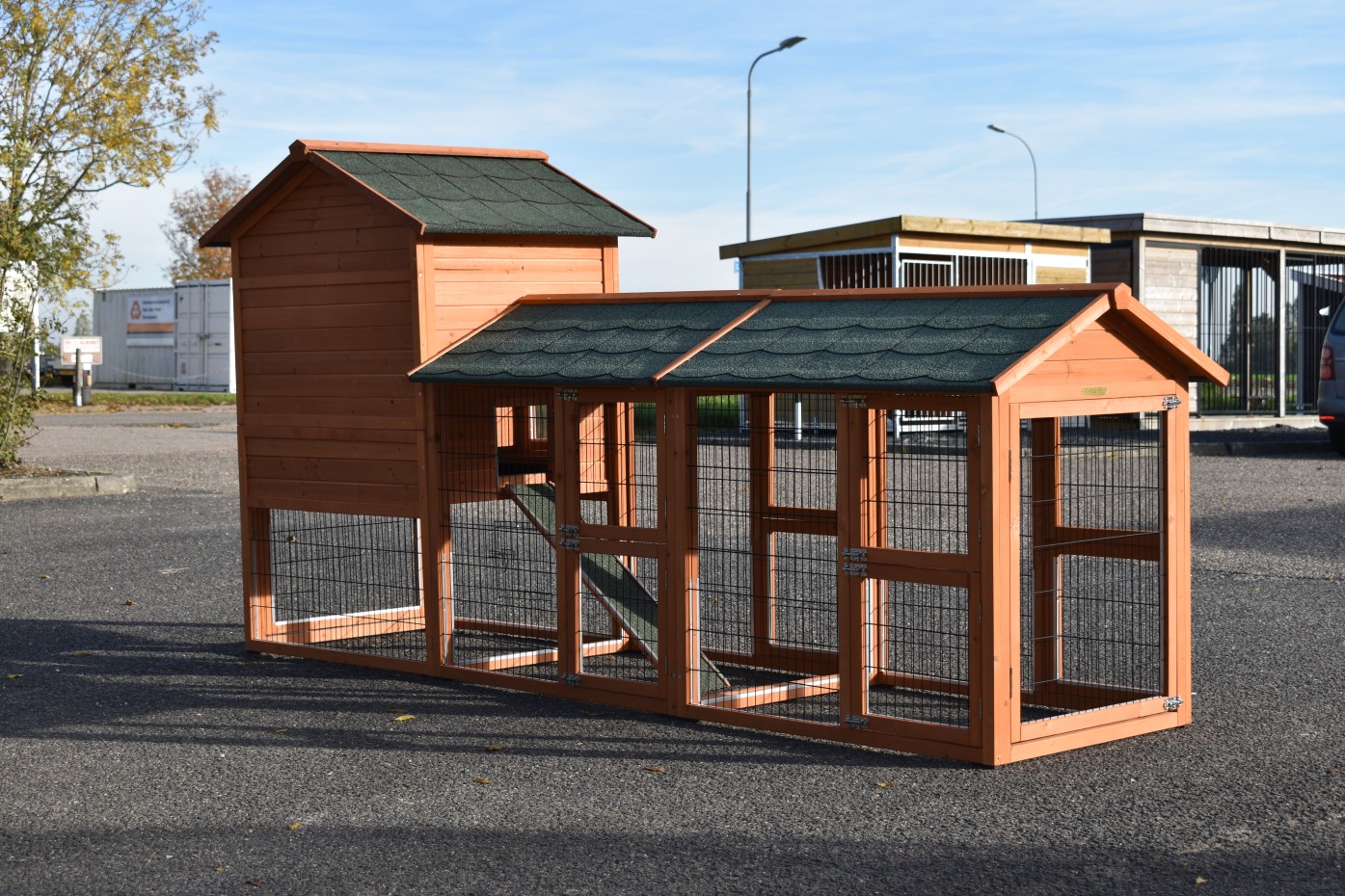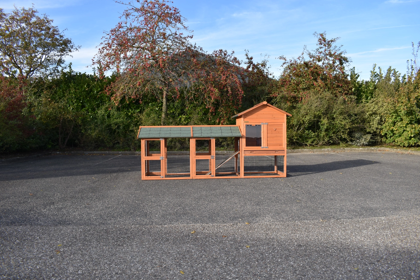 This practical coop is finished to perfection in every detail, with spacious doors and a large sleeping area equipped with two perches.