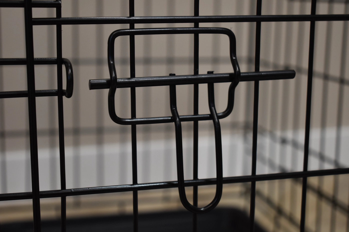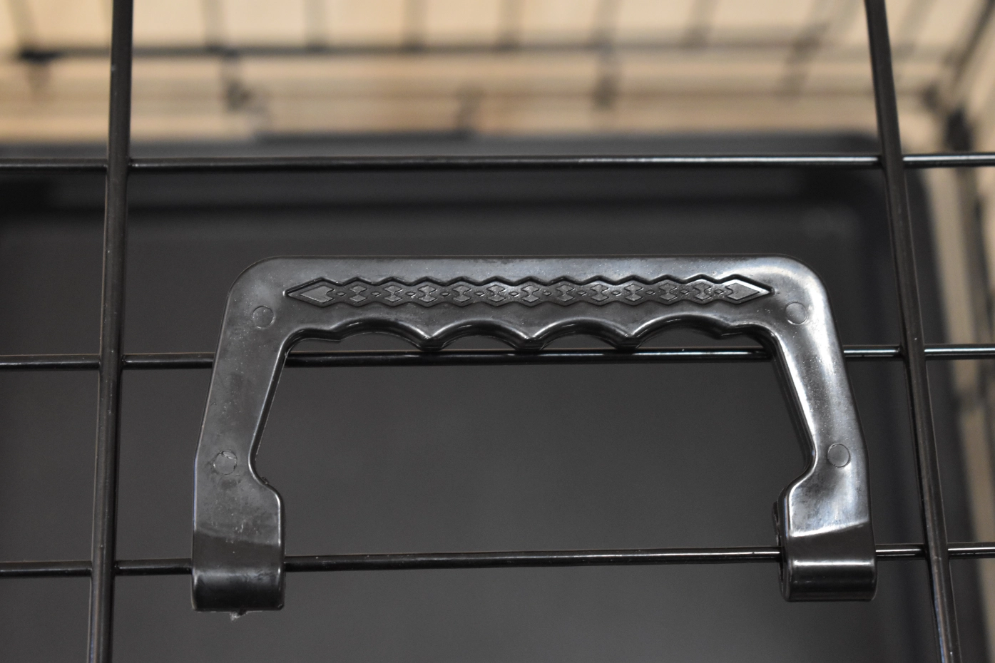 - Solid dog crate with black-coated bars