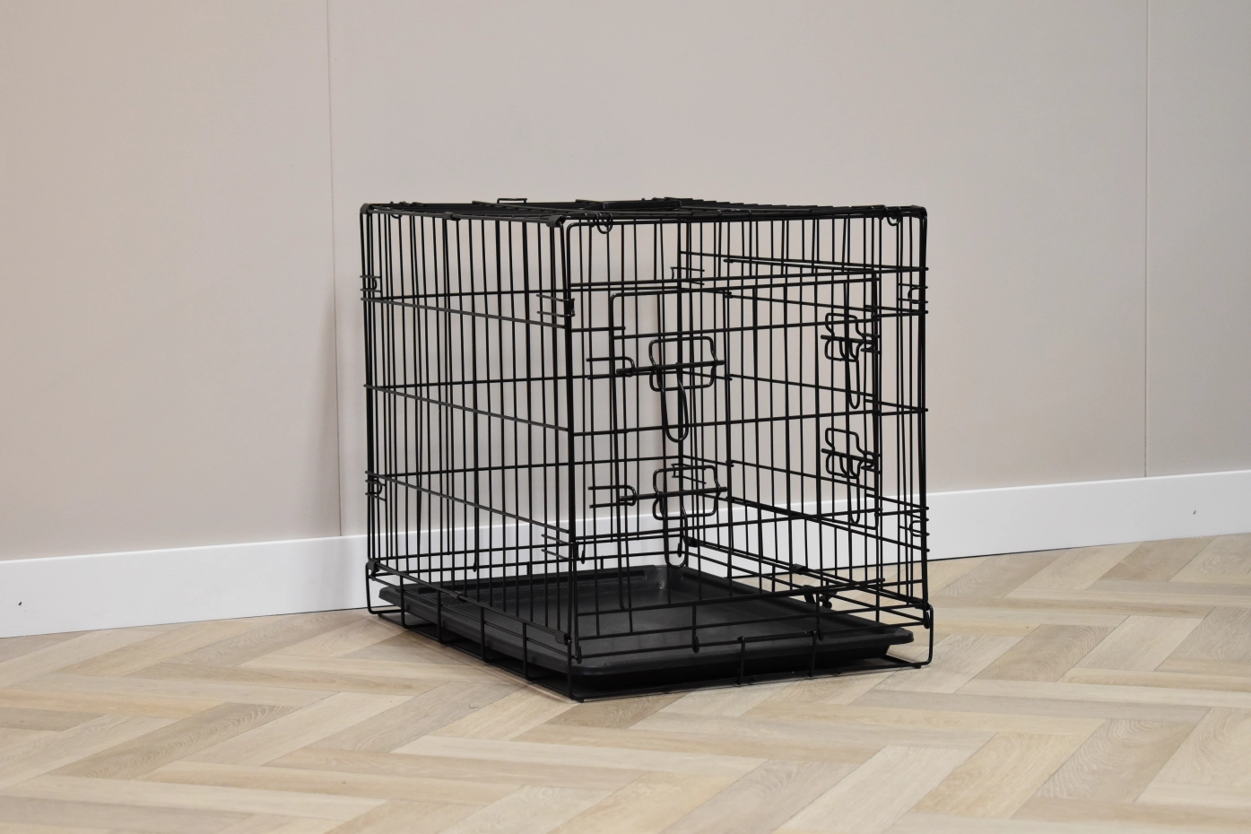 - The dog crate is provided with solid doors with locks