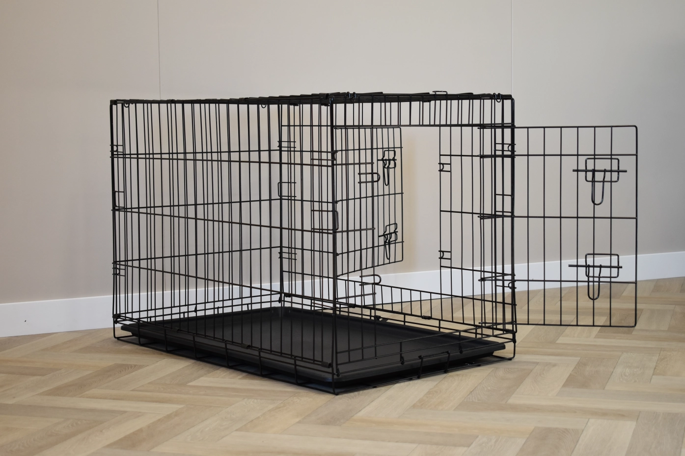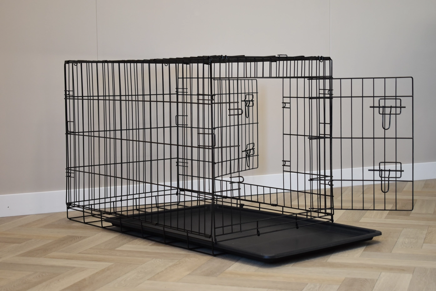 - The dog crate is provided with solid doors with locks