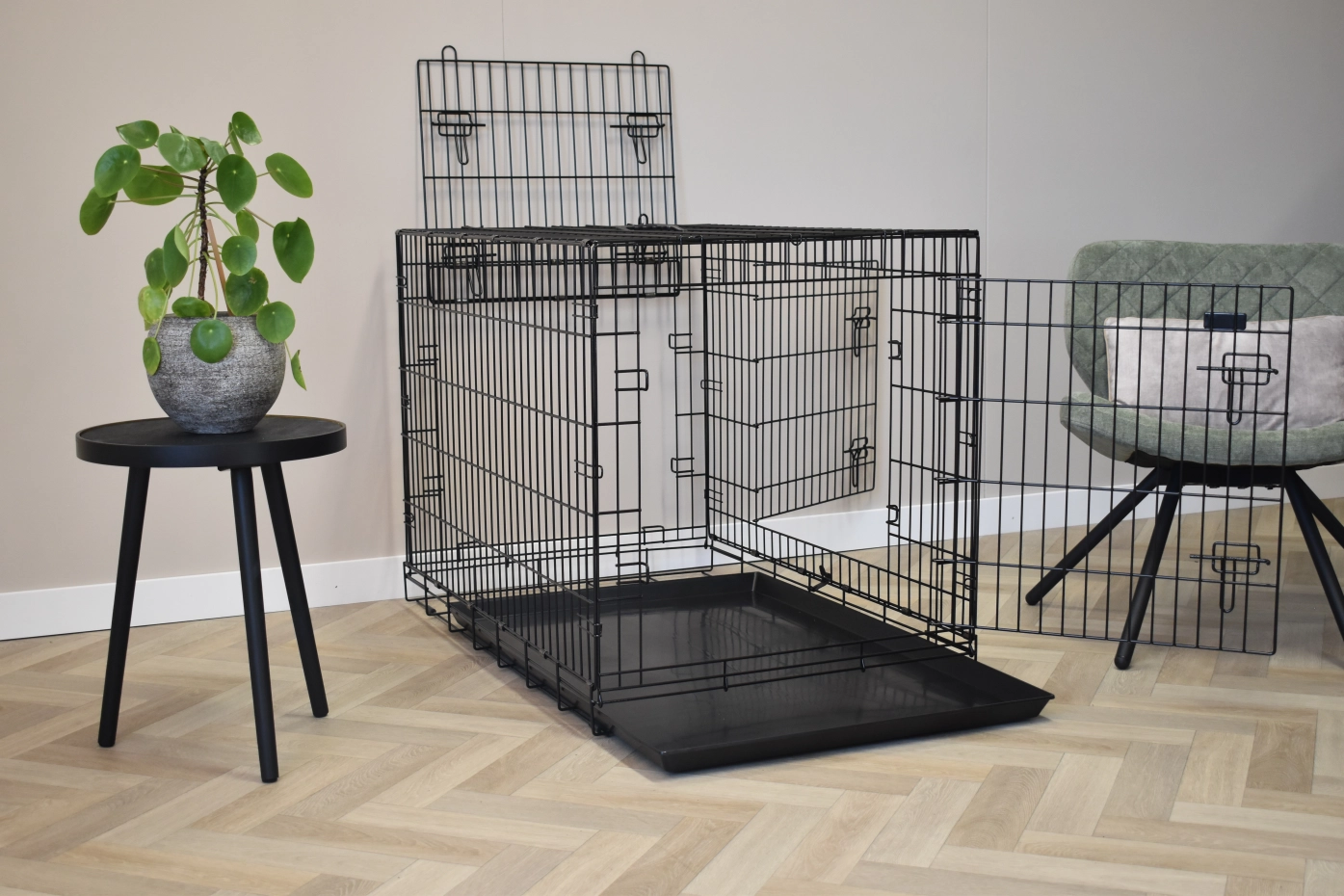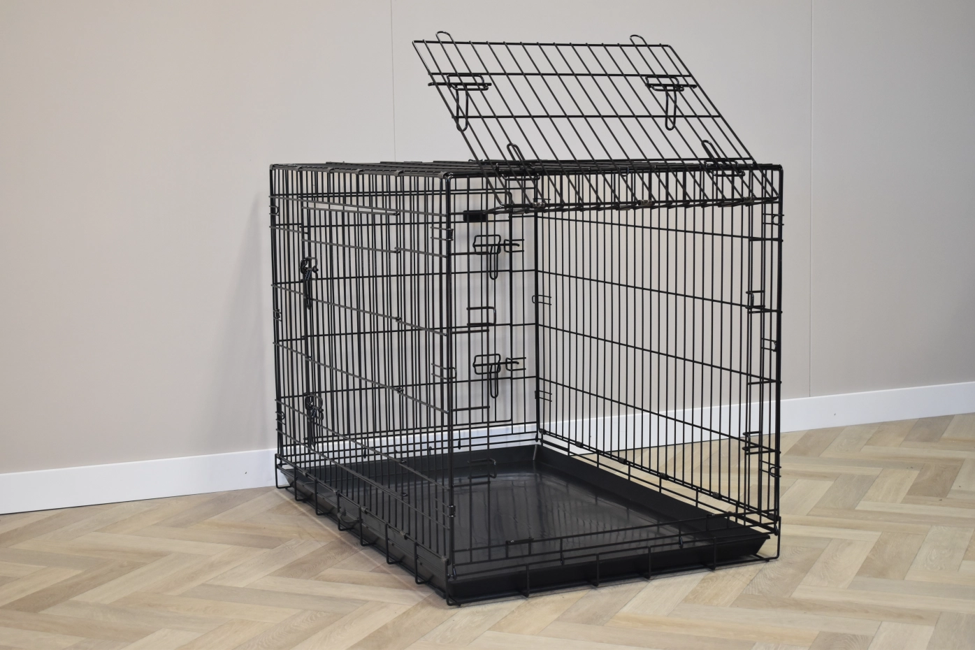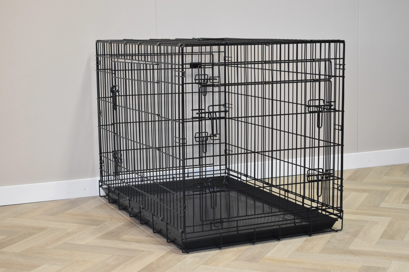 - Very solid dog cage with sturdy, thick, black powder-coated bars