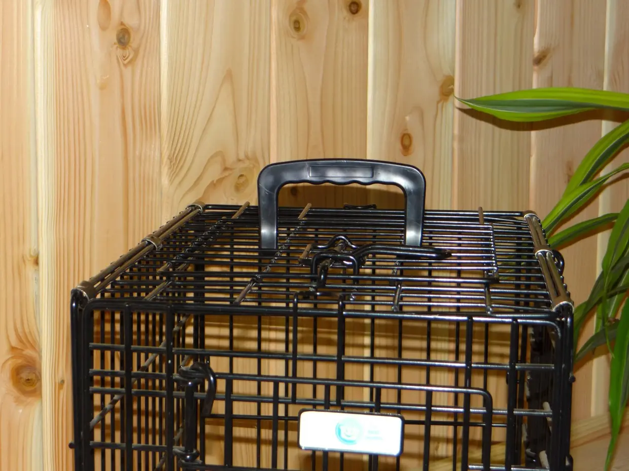 - The dog cage is easy to fold and therefore very compact to transport. It is even equipped with a handle