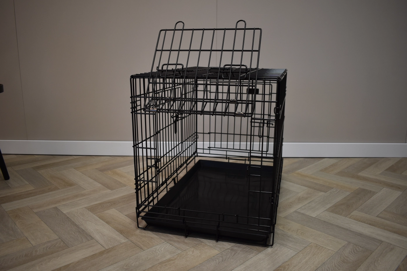 - The dog cage is easy to fold and therefore very compact to transport. It is even equipped with a handle