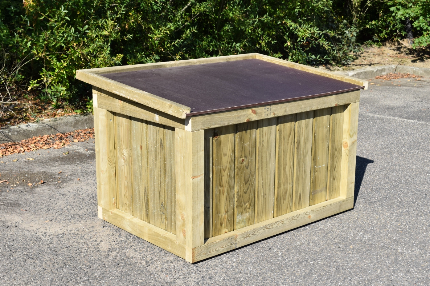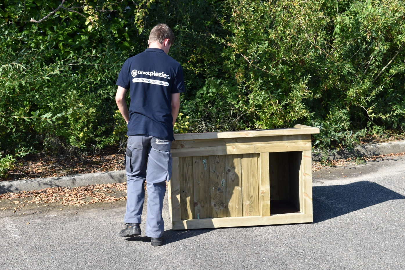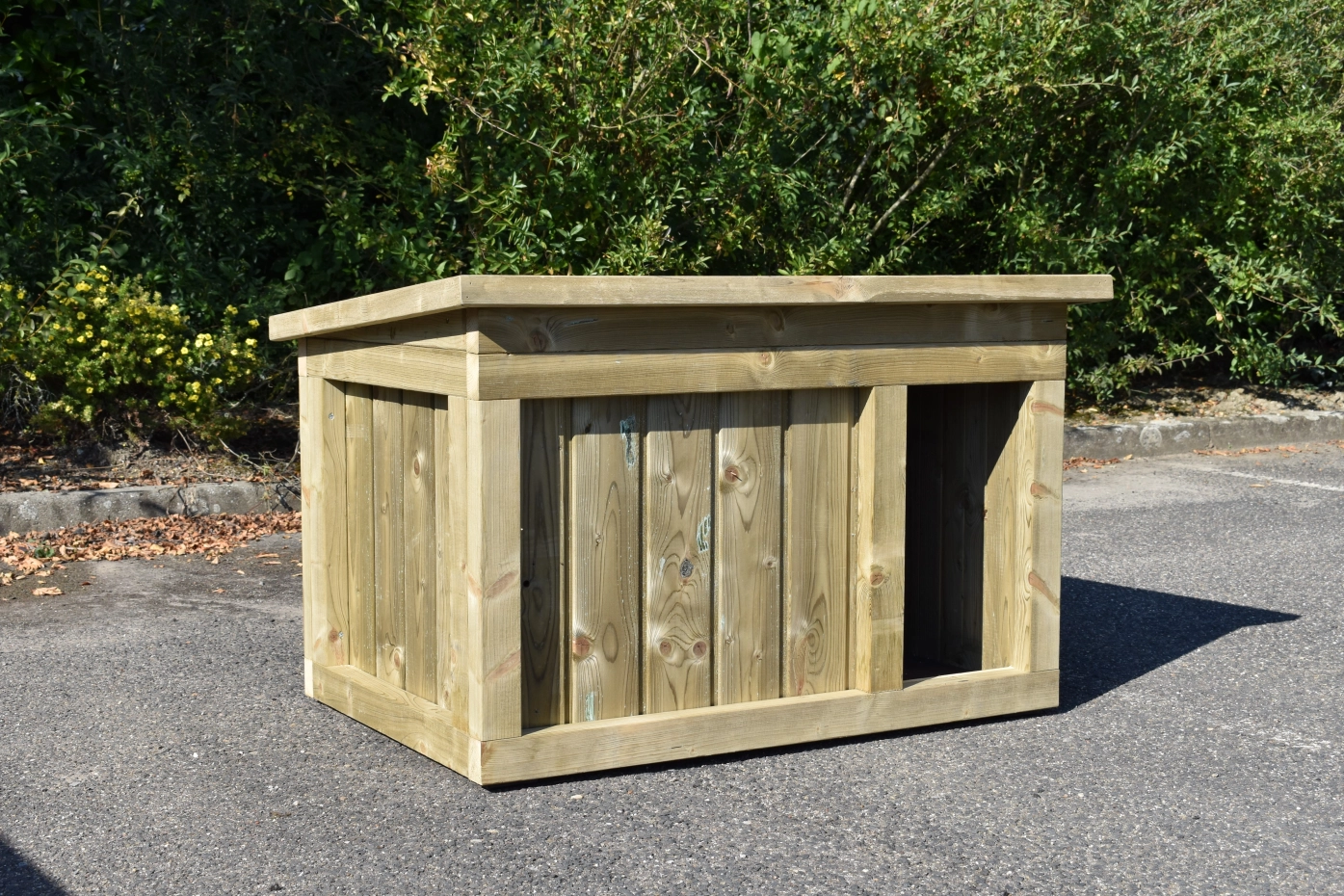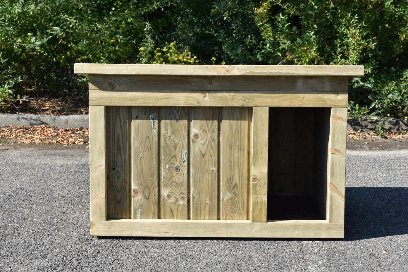 - Doghouse of high pressure treated pinewood in combination with betonplex