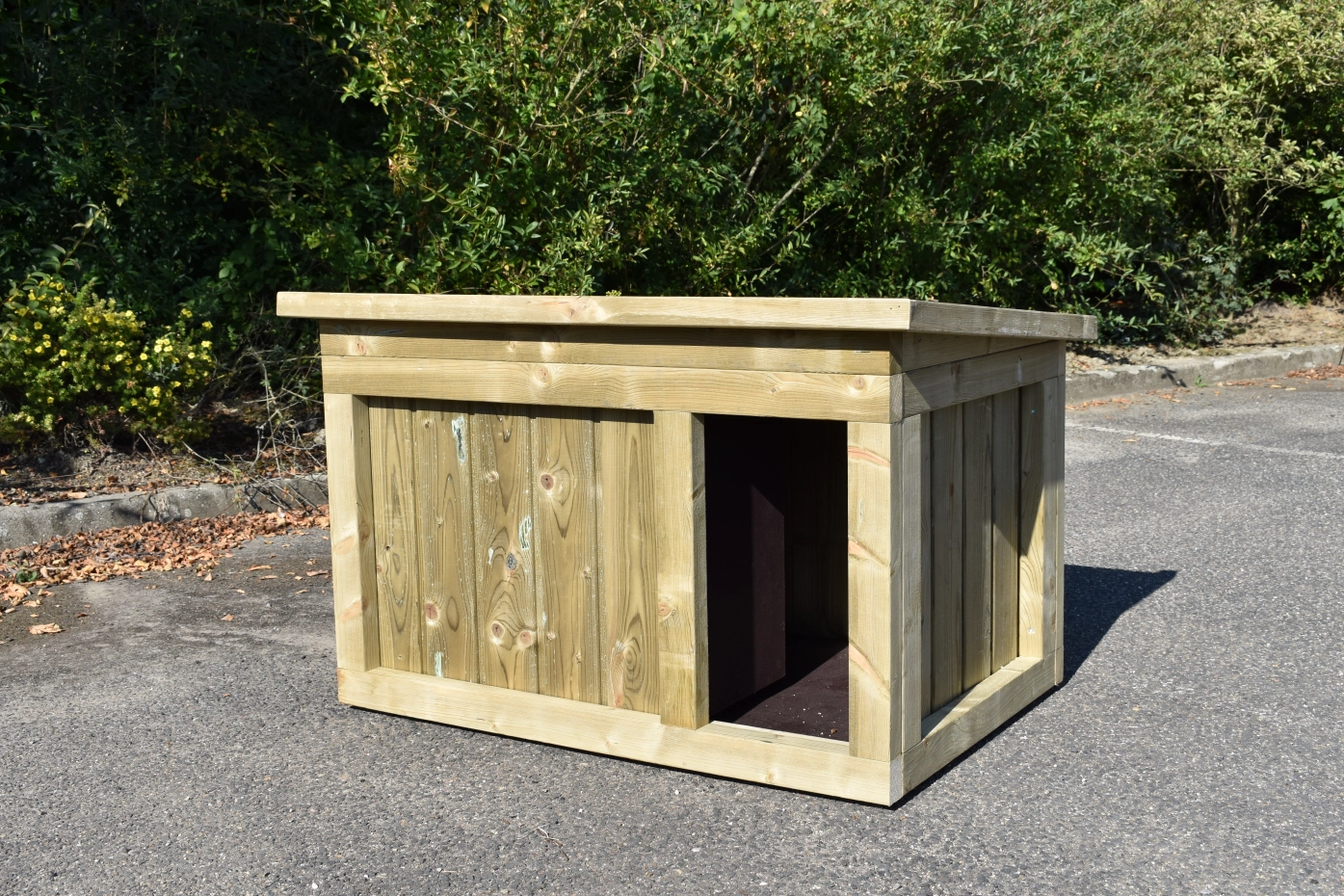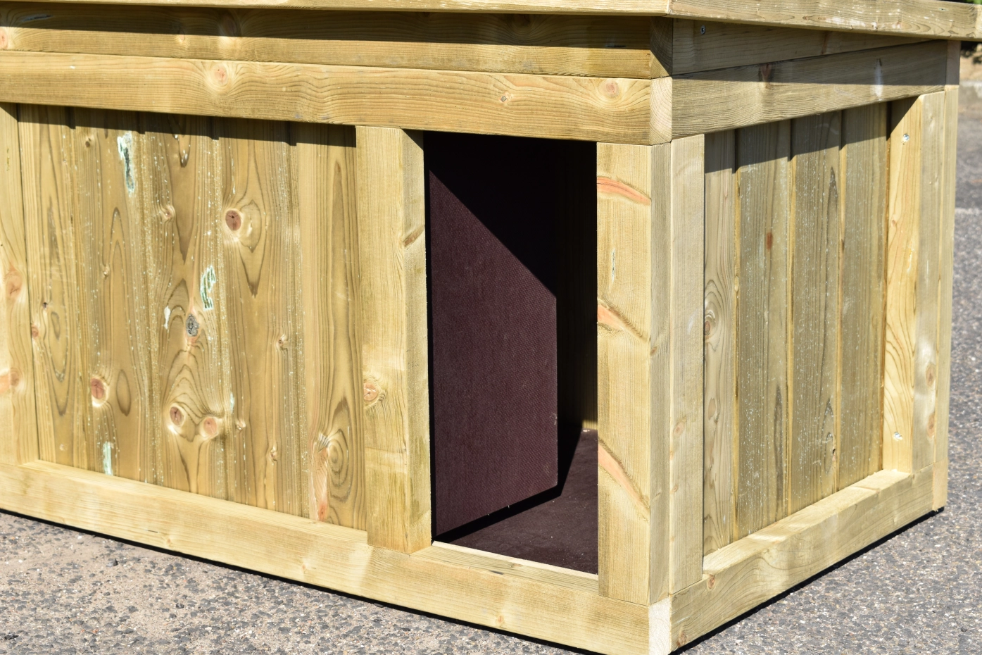 - Doghouse of high pressure treated pinewood in combination with betonplex