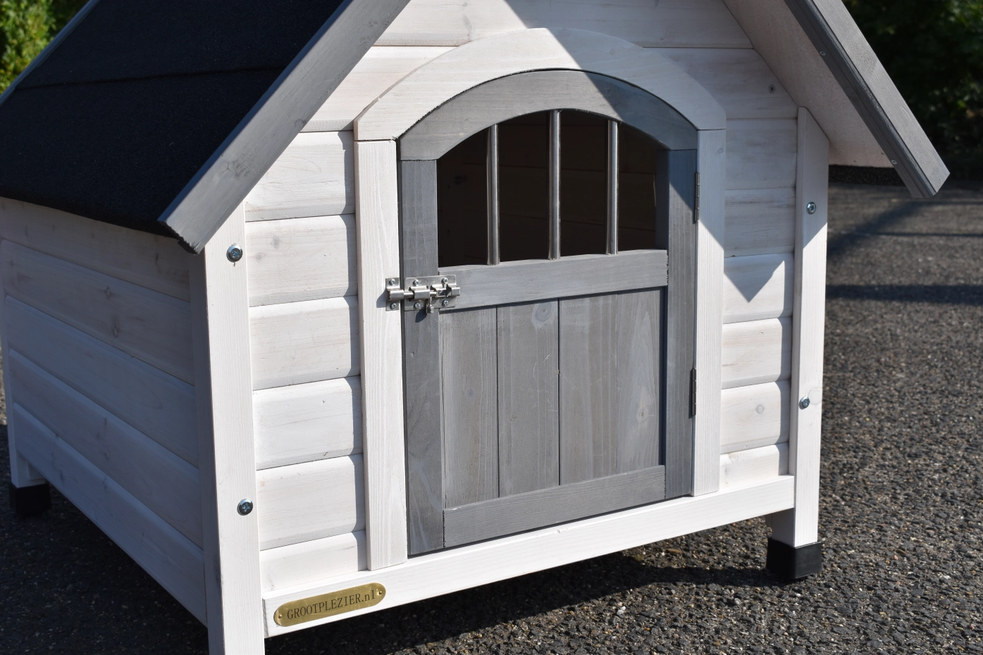 - Does not bark but bites: kennel with closed roof