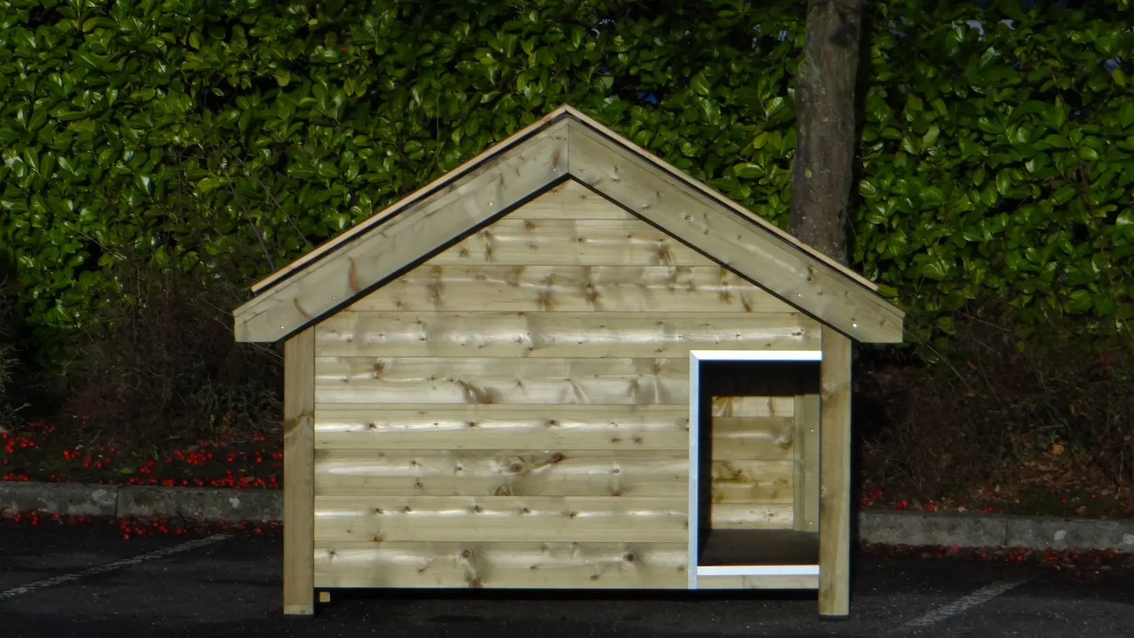 - Doghouse of high pressure treated pinewood in combination with betonplex