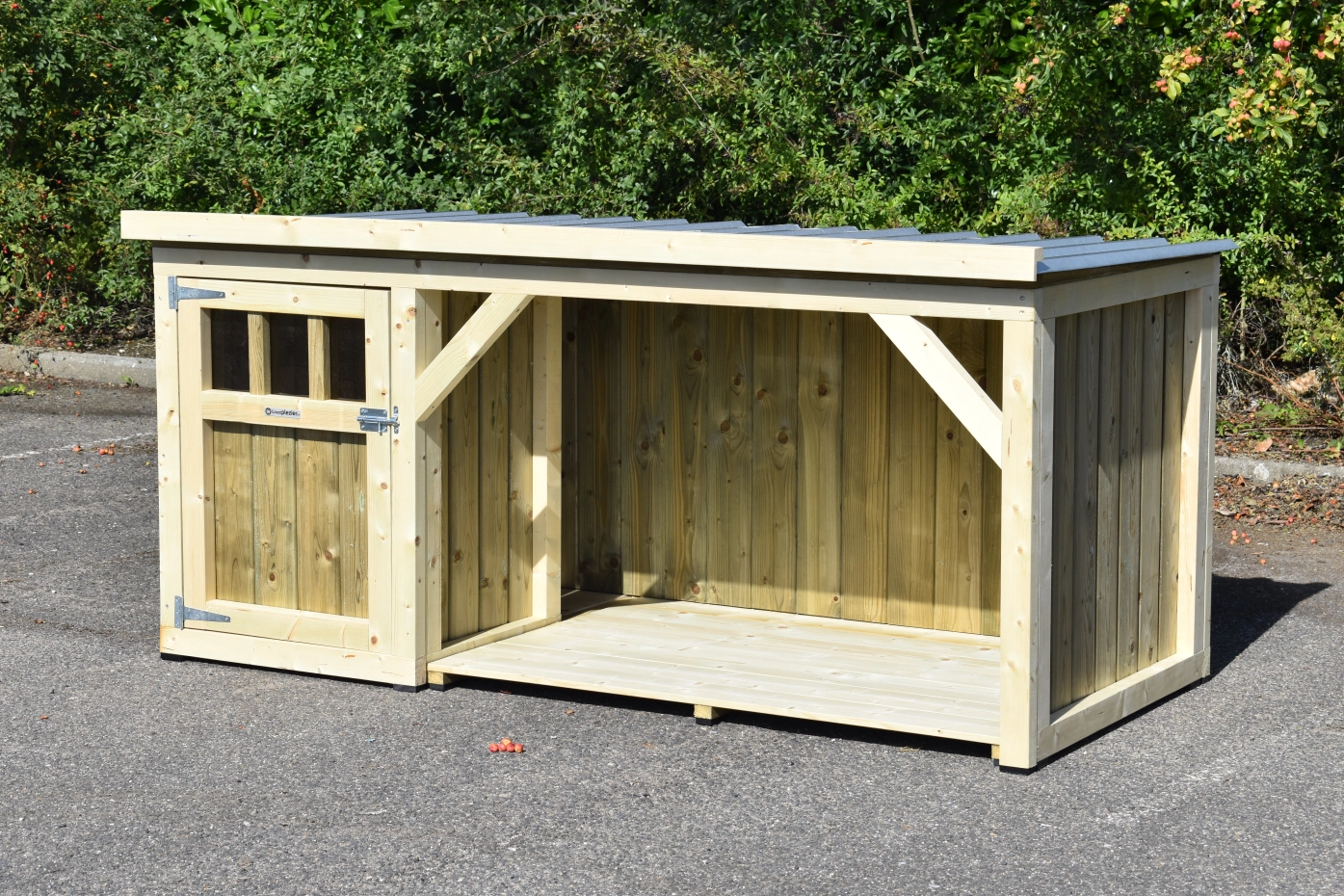 - Does not bark but bites: kennel with closed roof
