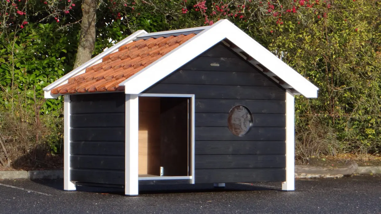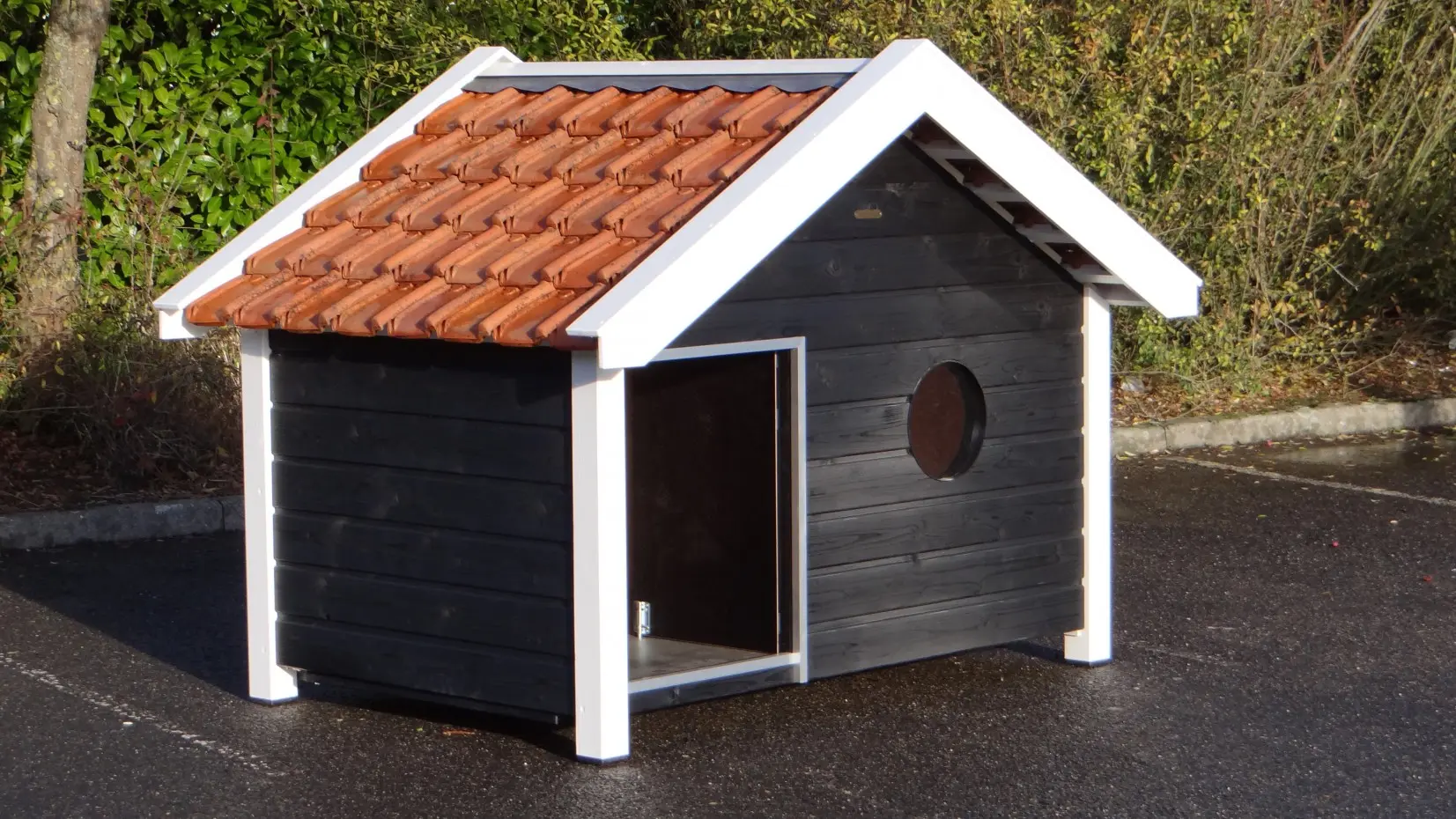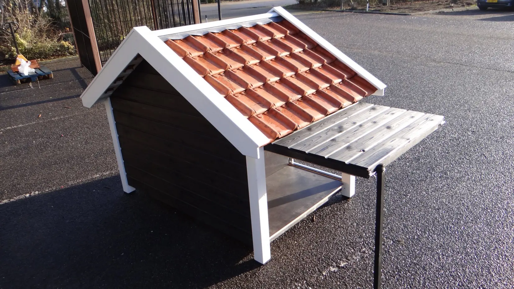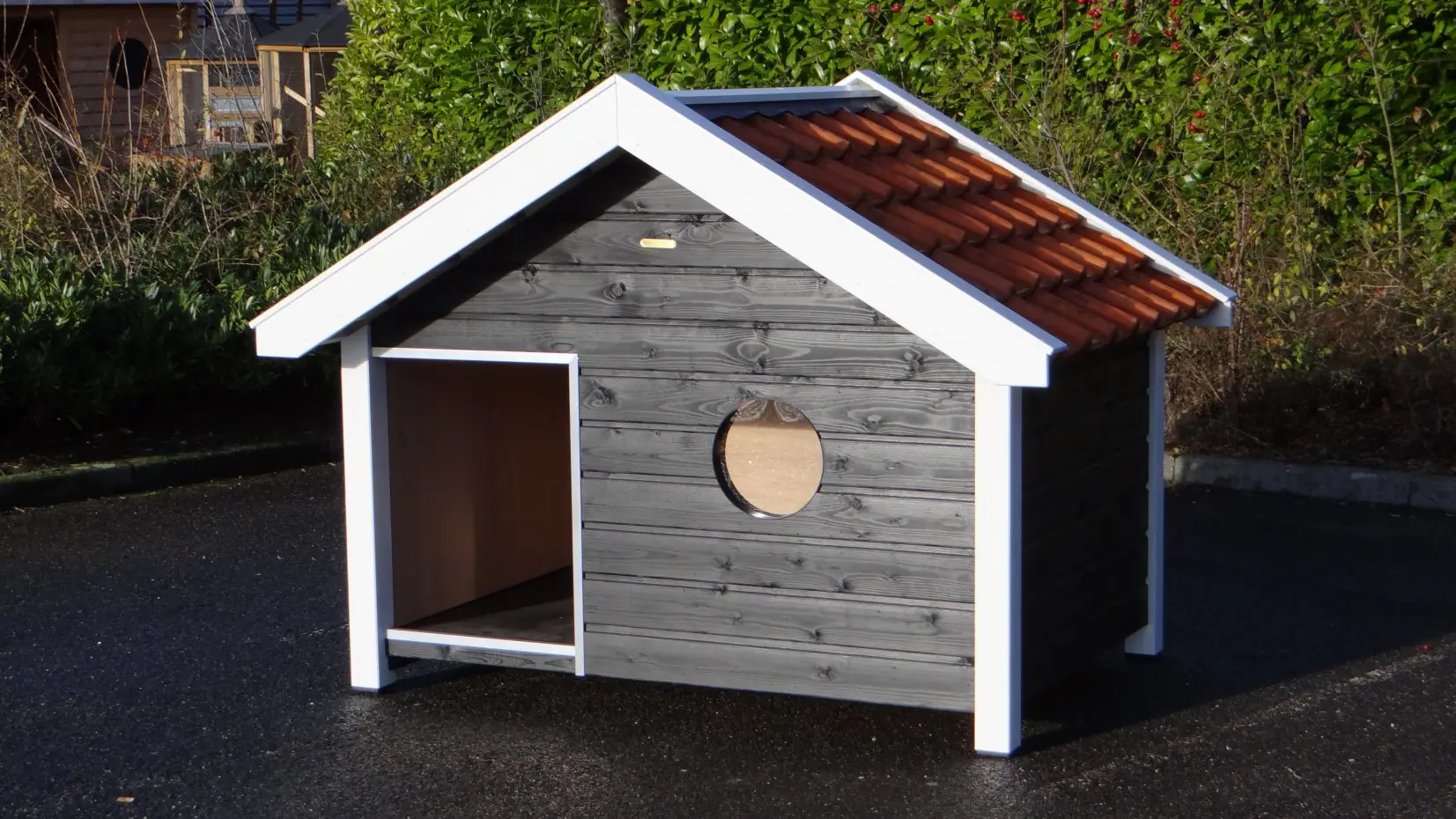 - Doghouse of high pressure treated pinewood in combination with betonplex