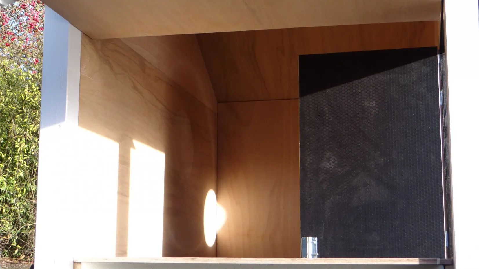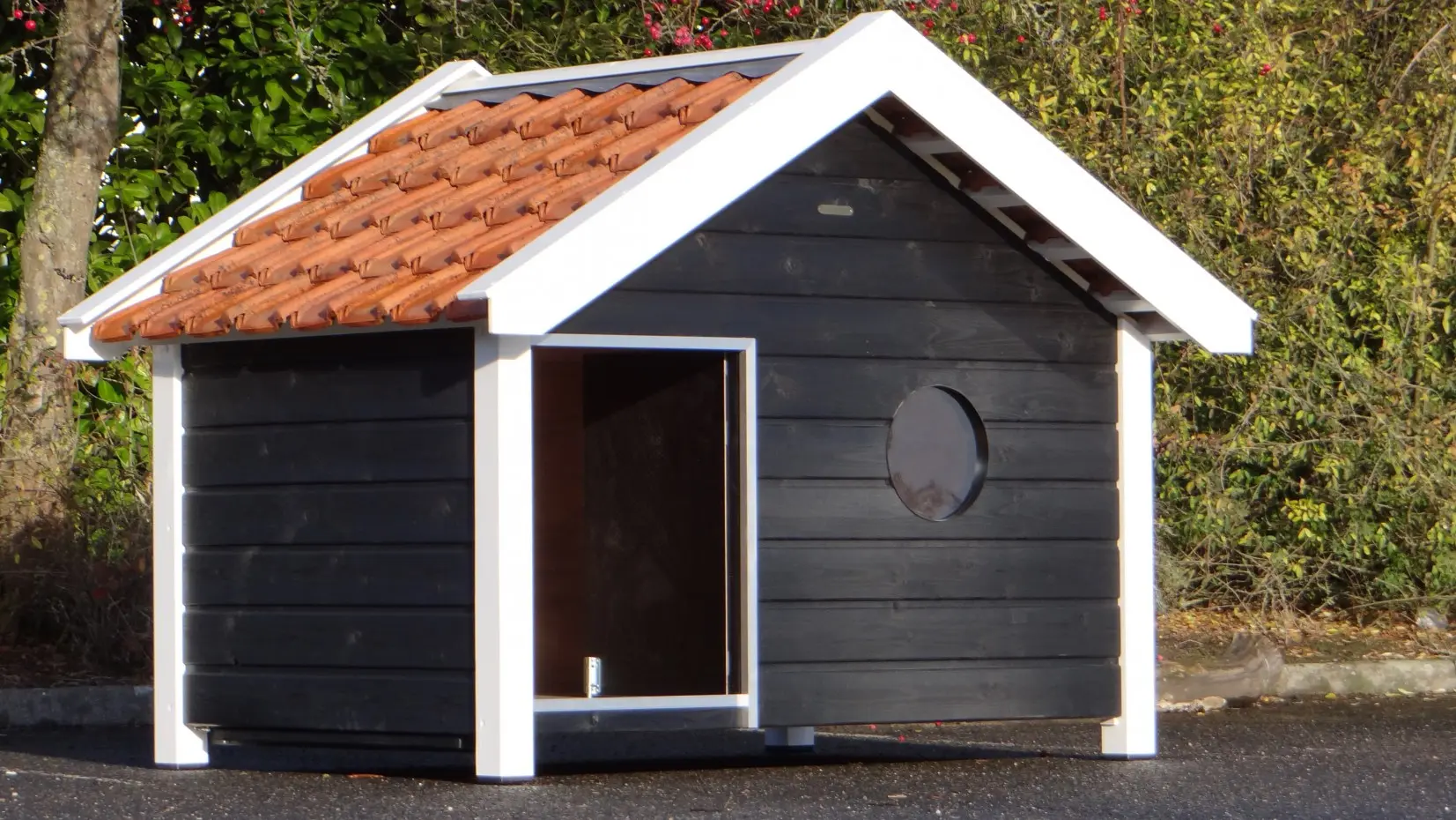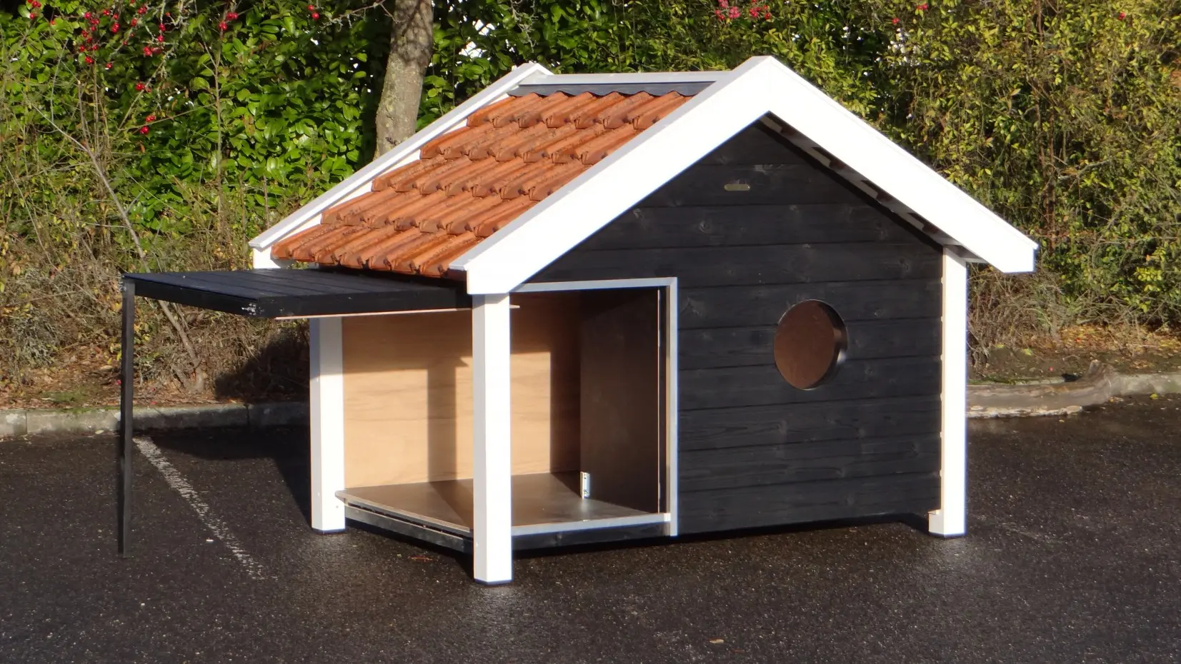 - The doghouse is equipped with a windwall, which can be pushed against the wall as well
