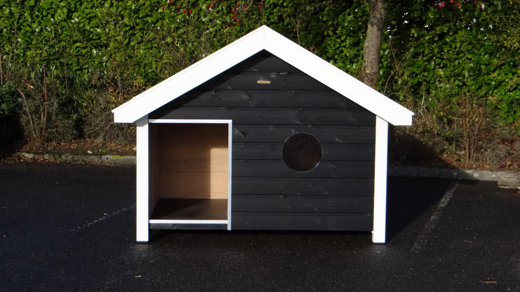 Pig house BINQ is a house of high quality. The walls are reinforced with a construction beam, so that it is a solid house. This house is made of impregnated pinewood and is painted in the colours black and white.
