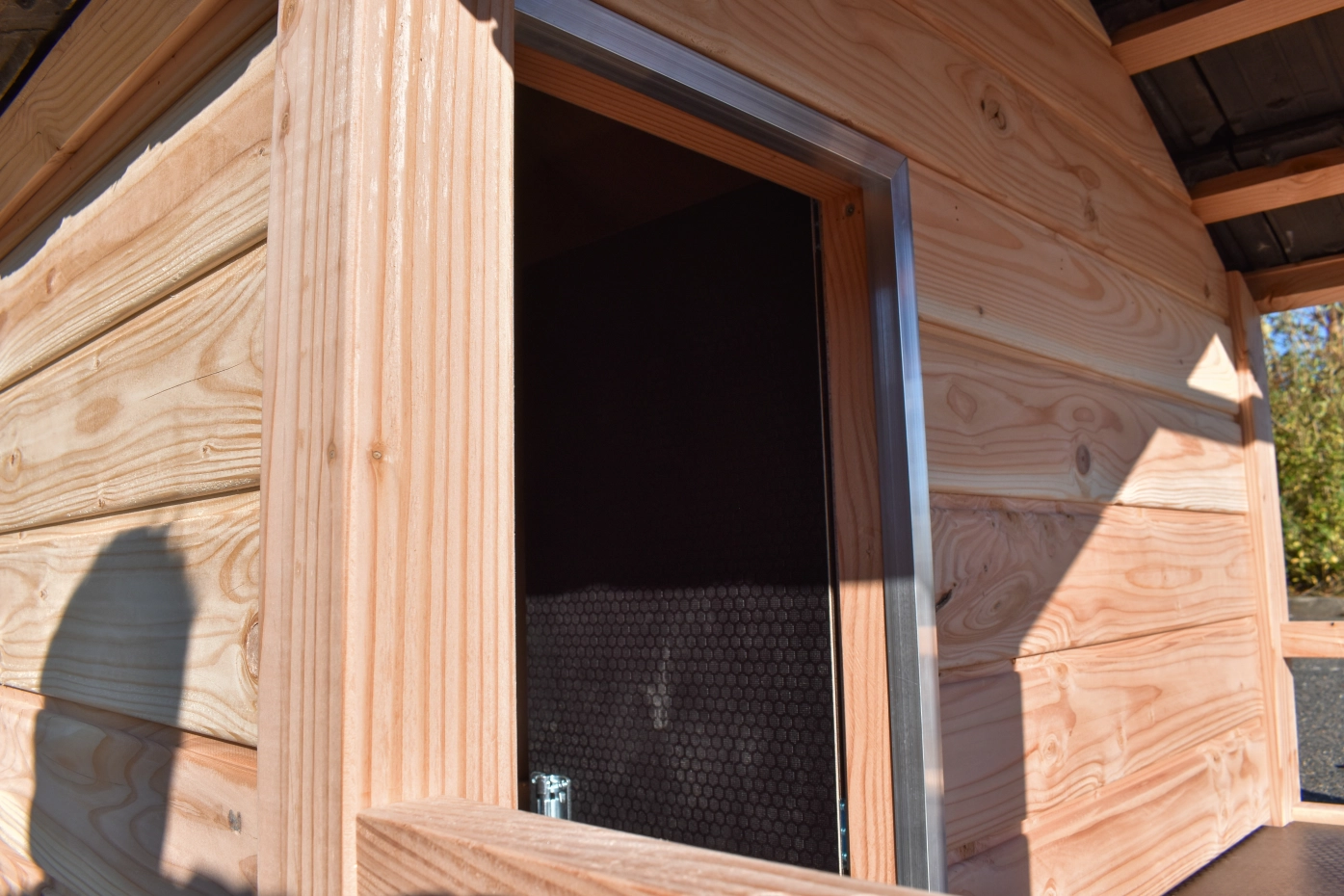 • The doghouse is equipped with a windwall, which can be pushed against the wall as well