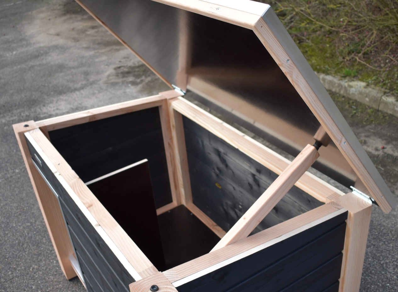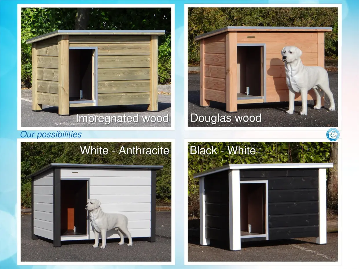 Dog house Wolf black/Douglas is a nice outdoor place for your dog. It is insulated, so your dog can stay inside the house both in the winter as in the summer. The house will be made by our carpenters and it is a house of the best quality. The house do not need any further treatment.