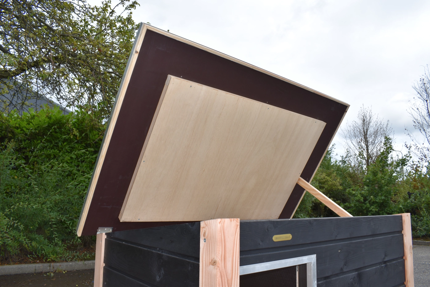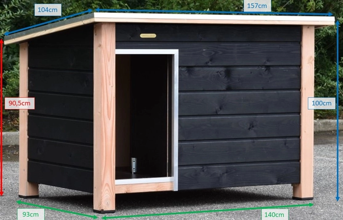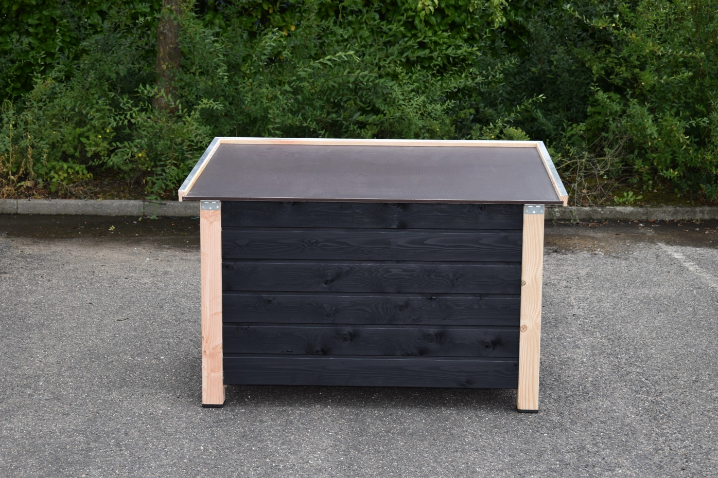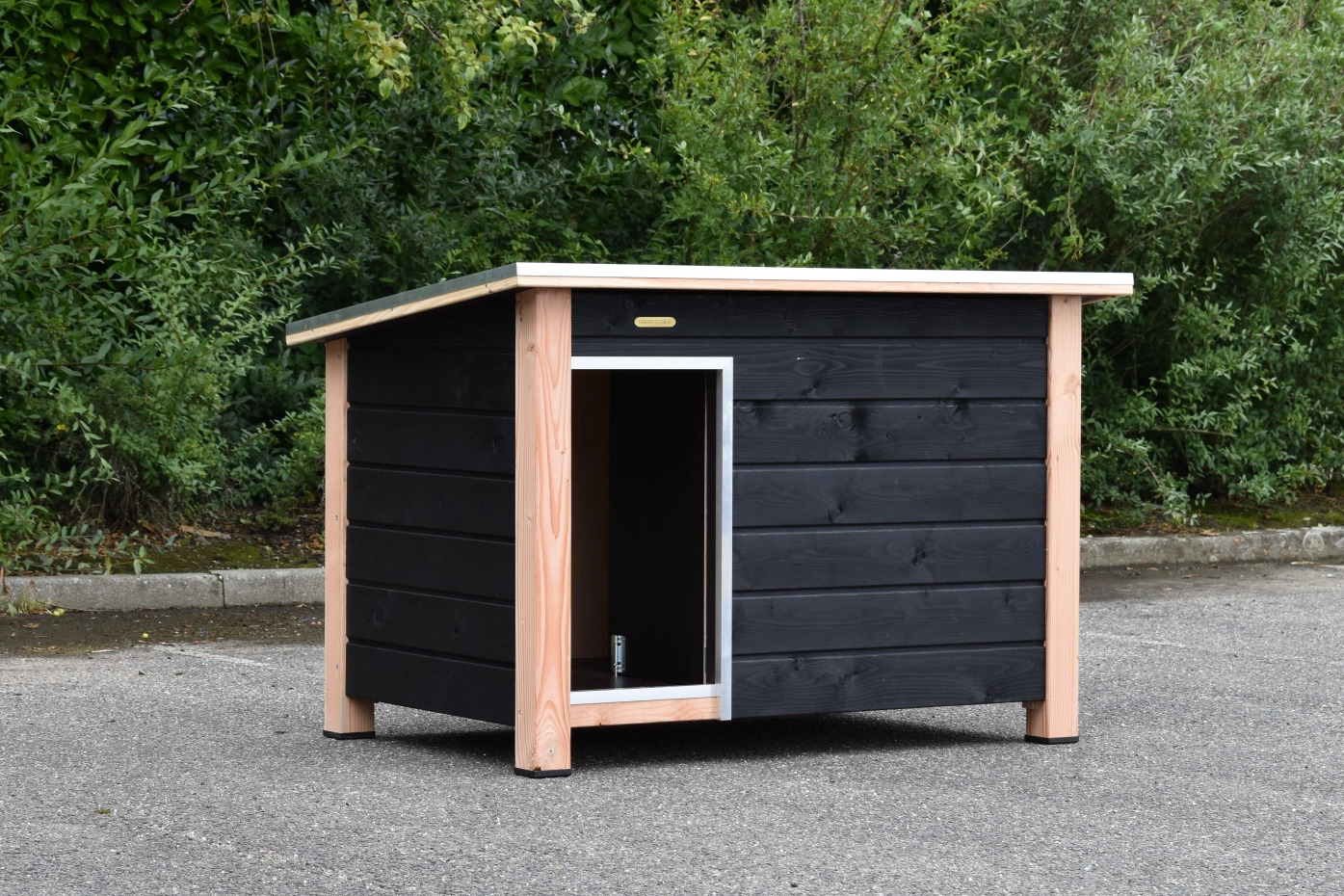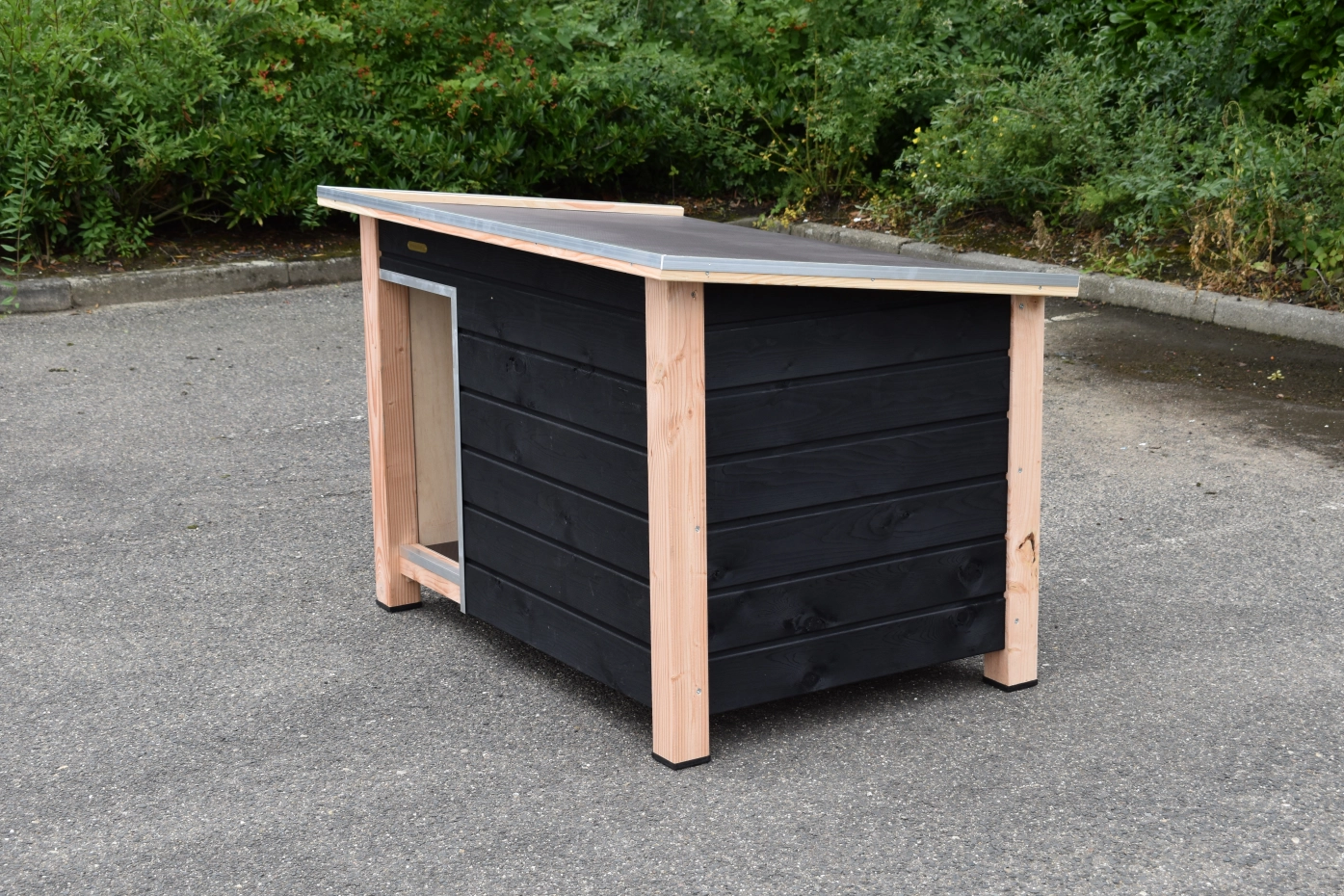 Dog house Wolf black/Douglas is a nice outdoor place for your dog. It is insulated, so your dog can stay inside the house both in the winter as in the summer. The house will be made by our carpenters and it is a house of the best quality. The house do not need any further treatment.